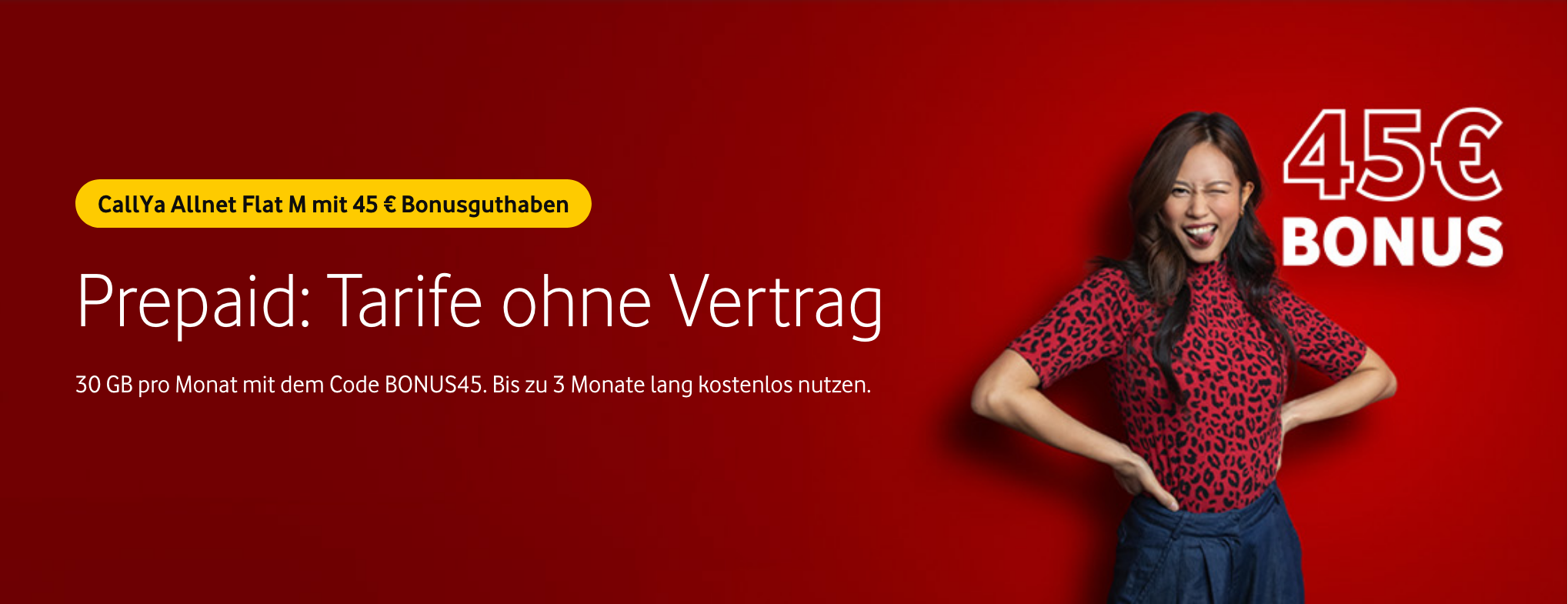 Wer einmal ausgiebig und ohne Zeitdruck das Vodafone-Netz mit maximaler Leistung austesten will, bekommt dafür mit der aktuellen Bonus-Aktion die perfekte Gelegenheit. Der Tarif ist kein Mini-Tarif mit vielen Einschränkungen, sondern bietet das volle Leistungsspektrum der CallYa-Tarife.