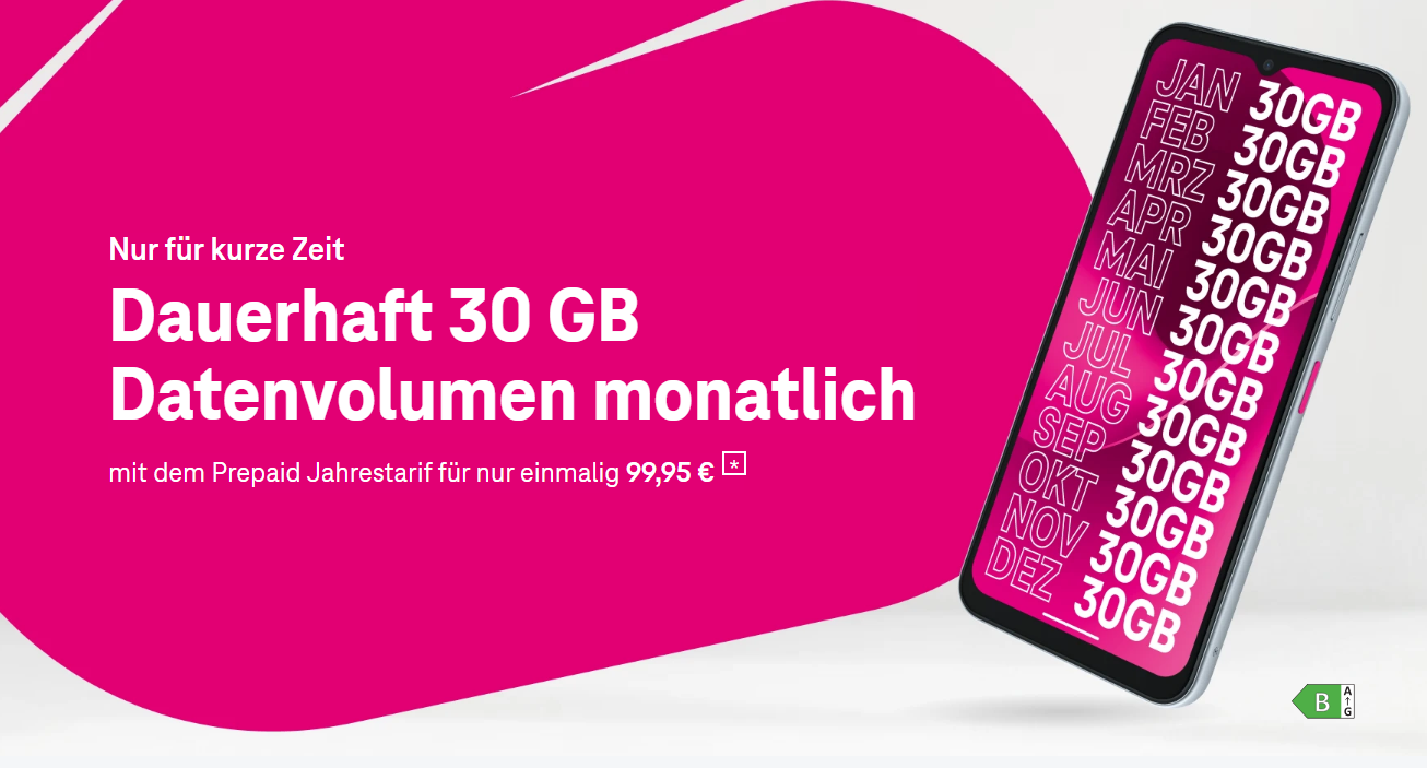 Telekom Prepaid Jahrestarif mit 360GB 5G und Smartphone für nur 104€