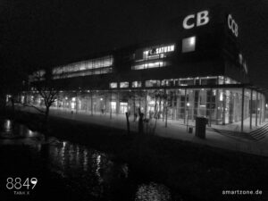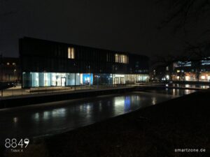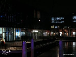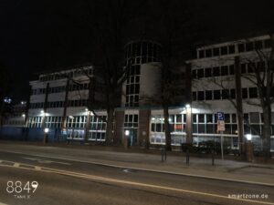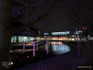 Die Nachtaufnahmen leiden unter der fehlenden Software-Optimierung. Die Kamera-App lässt maximal 0,3s Belichtungszeit zu, weshalb die Software den ISO-Wert im Dunkeln drastisch erhöht. Das dunkle, verrauschte Endergebnis verwundert daher nicht. Es bedarf ausreichend Kunstlicht, um brauchbare Nachtaufnahmen zu erzeugen.
