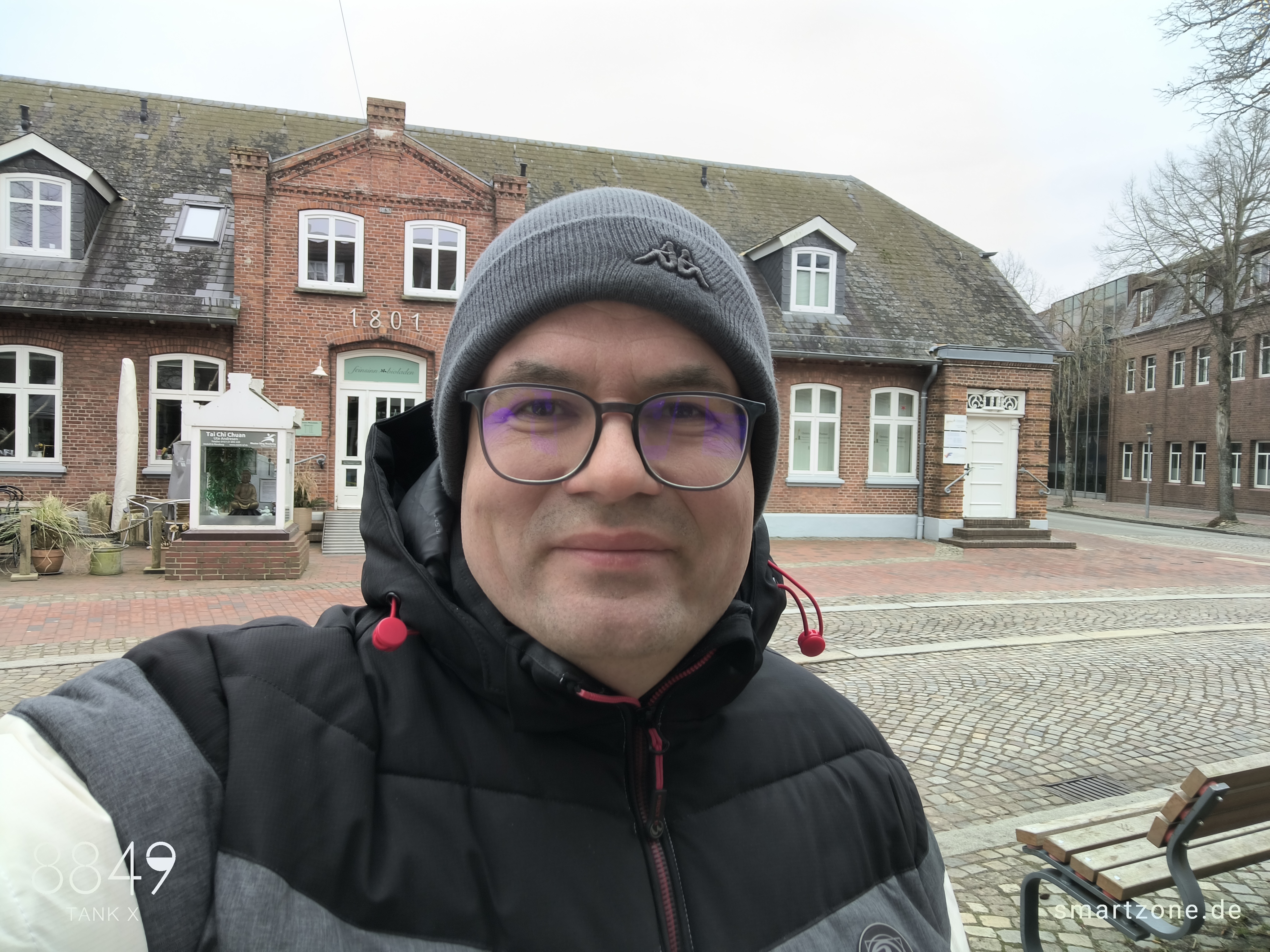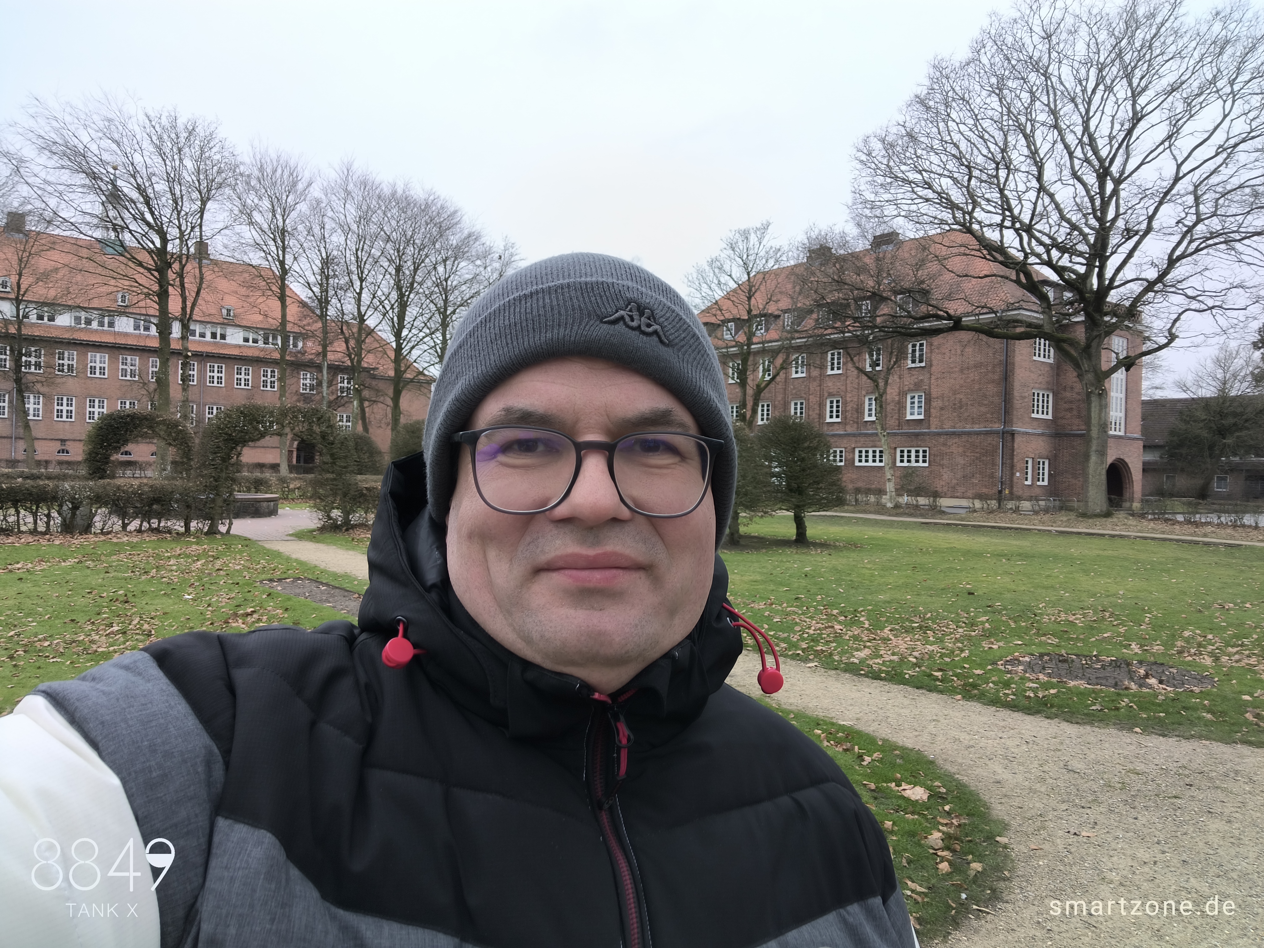 Obwohl ein 50-Megapixel-Sensor zum Einsatz kommt, fallen die Ergebnisse der Frontkamera enttäuschend aus. Es mangelt den Selfies an Schärfe und dem korrekten Fokuspunkt. Die Farben wirken matt und der Kontrast bietet Luft nach oben. Trotz bedecktem Himmel neigt die Kamera zu Überbelichtungen. Für ansehnliche Selfies eignet sich das 8849 Tank X nicht.