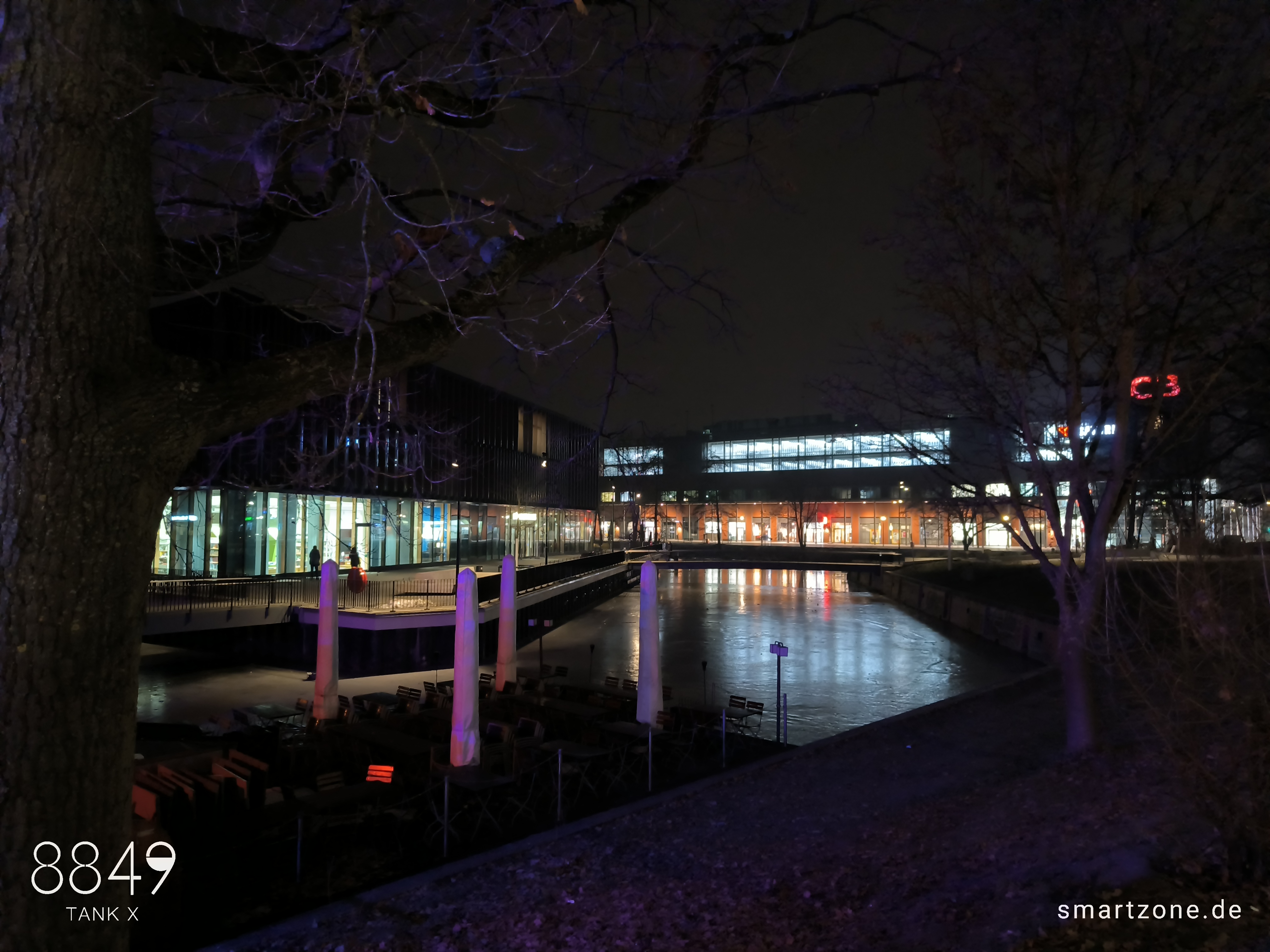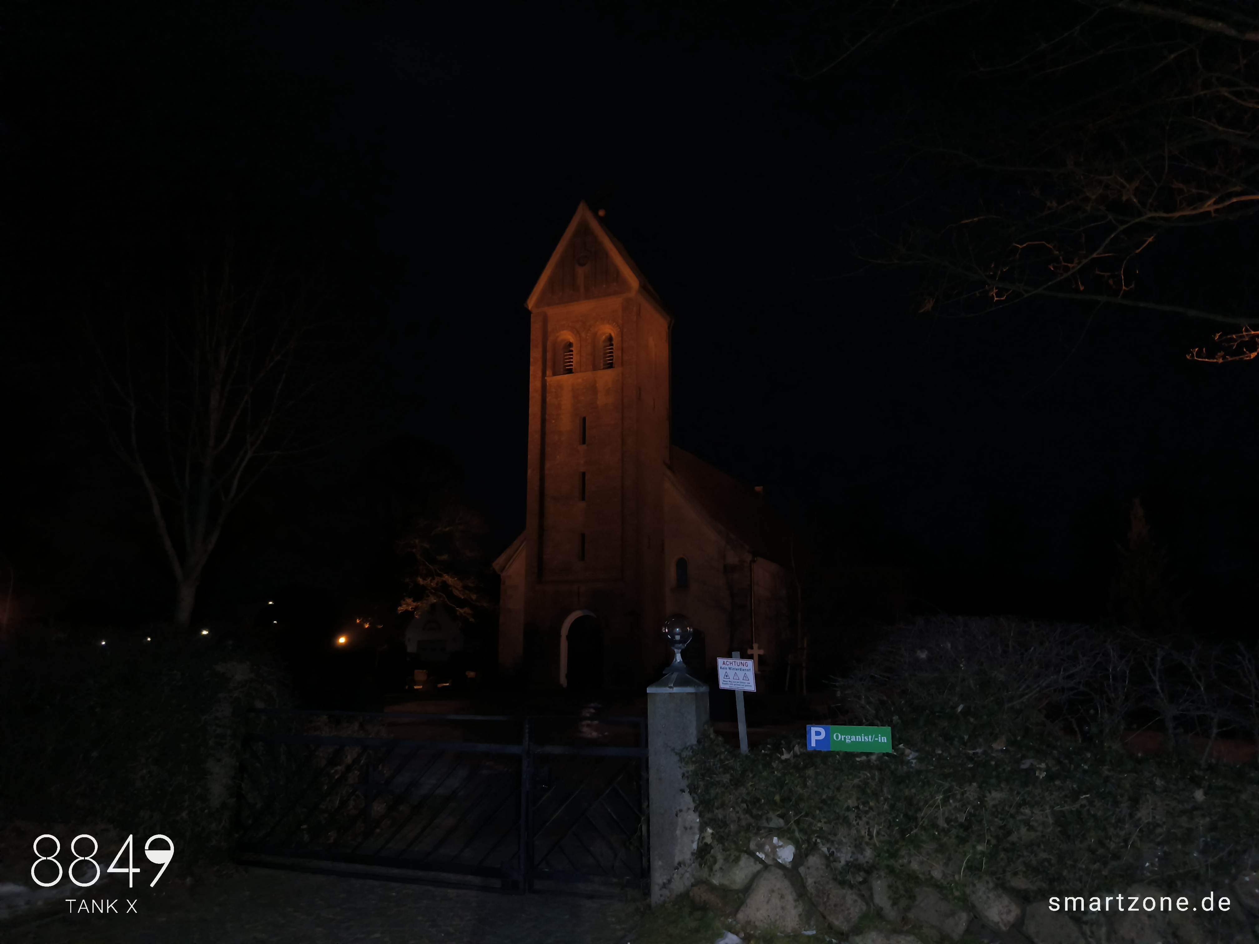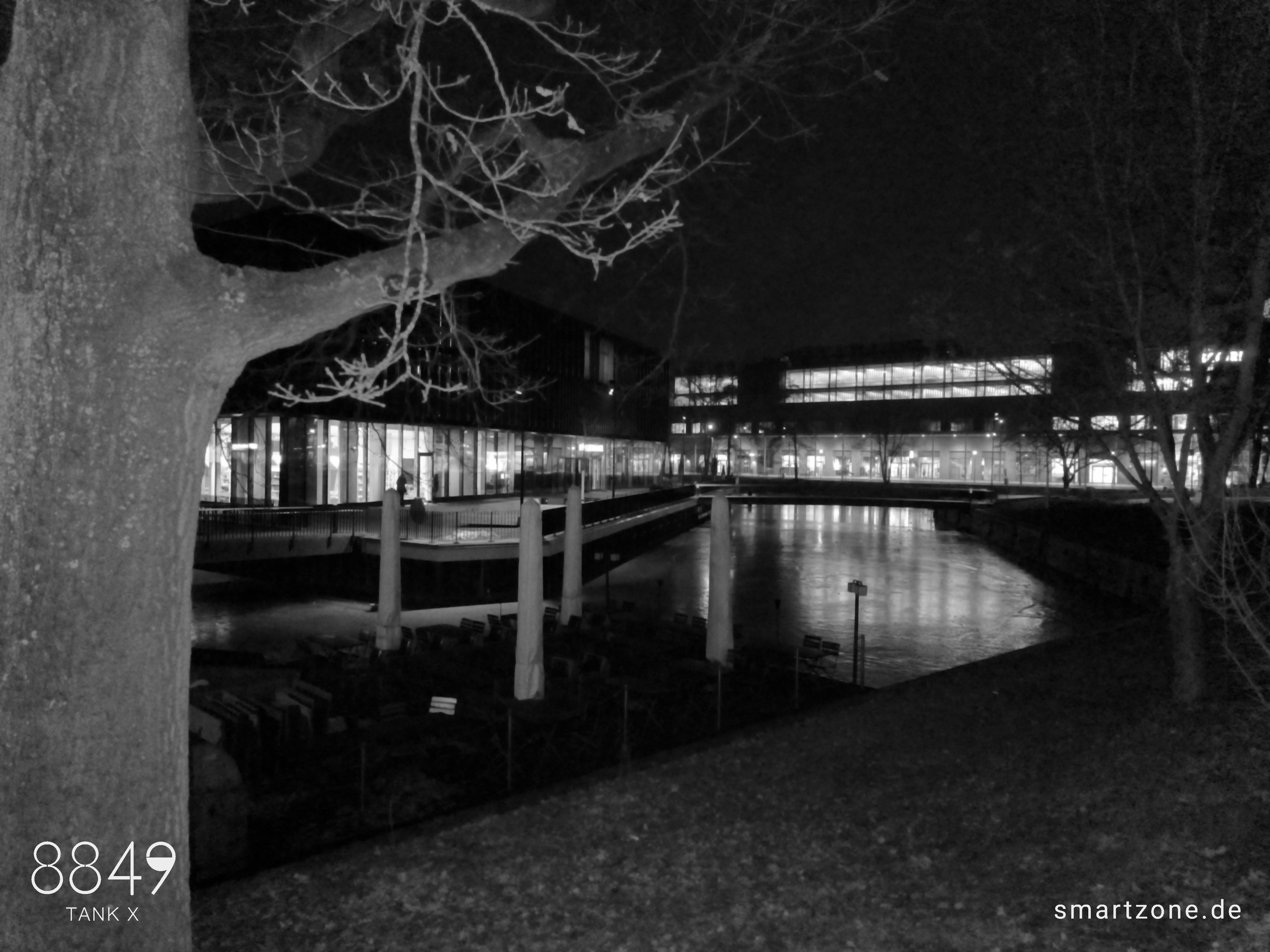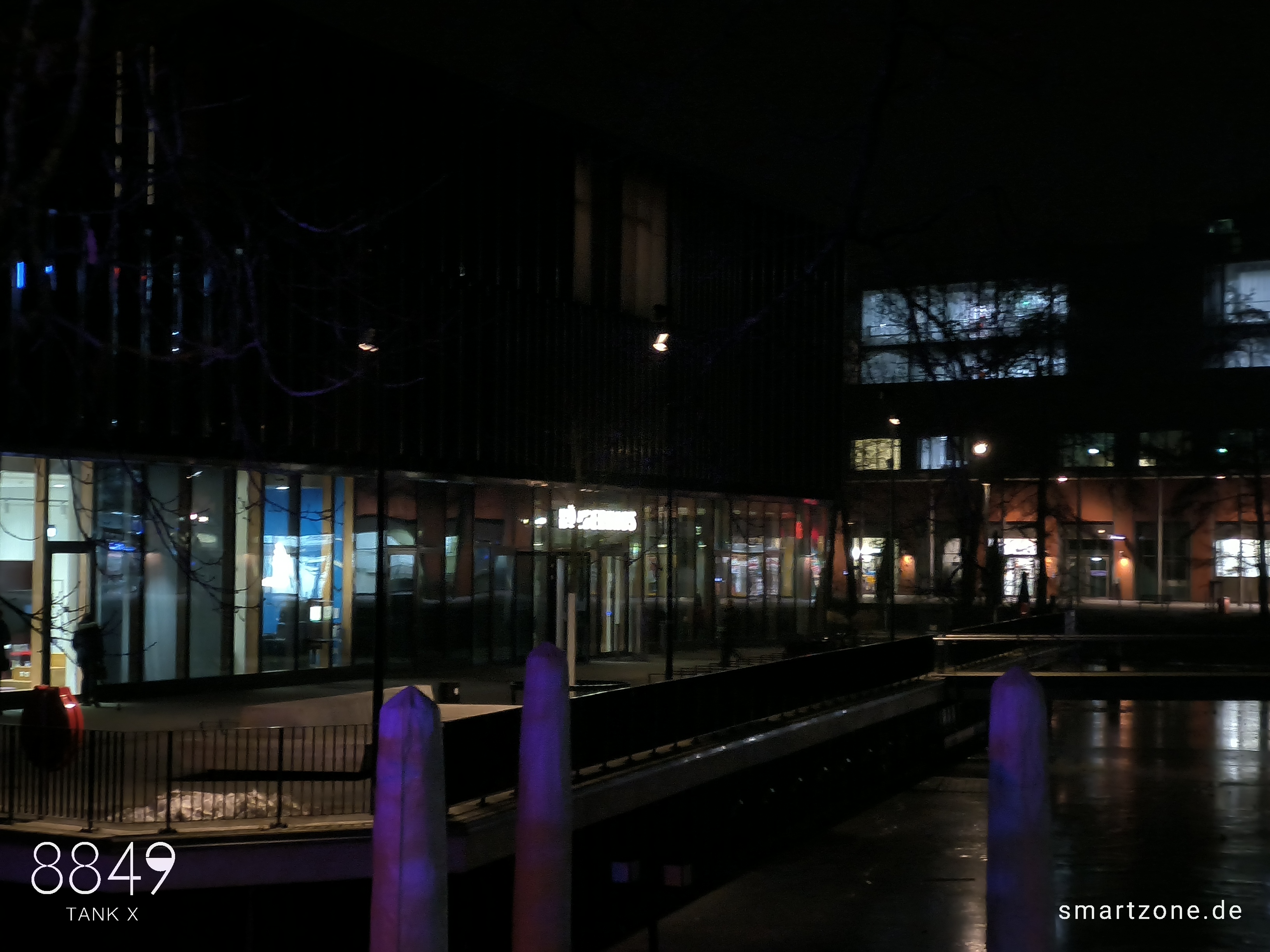 Die Nachtaufnahmen leiden unter der fehlenden Software-Optimierung. Die Kamera-App lässt maximal 0,3s Belichtungszeit zu, weshalb die Software den ISO-Wert im Dunkeln drastisch erhöht. Das dunkle, verrauschte Endergebnis verwundert daher nicht. Es bedarf ausreichend Kunstlicht, um brauchbare Nachtaufnahmen zu erzeugen.