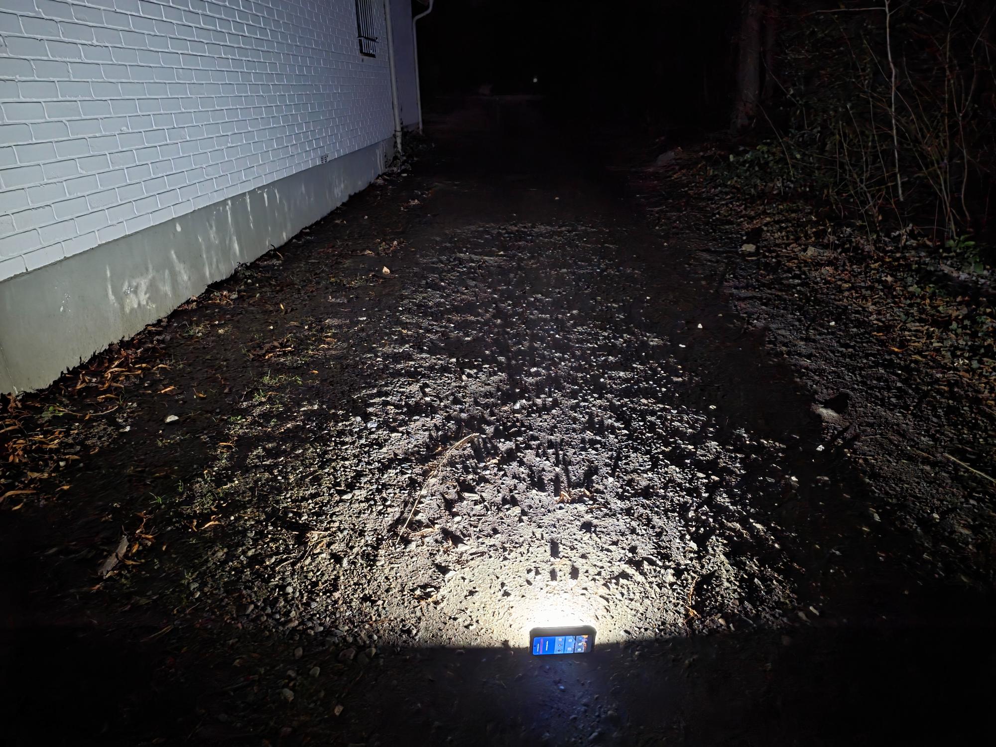 Neben dem kleinen LED-Blitz, der auch als Taschenlampe dient, gibt es das großflächige Campinglicht. Dieses lässt sich in drei Stufen regulieren. Das Smartphone hält die hellste Stufe nicht dauerhaft und reduziert sie langsam auf die mittlere Stufe. Die höchste Stufe lässt sich alle 10 Minuten einmal aktivieren.