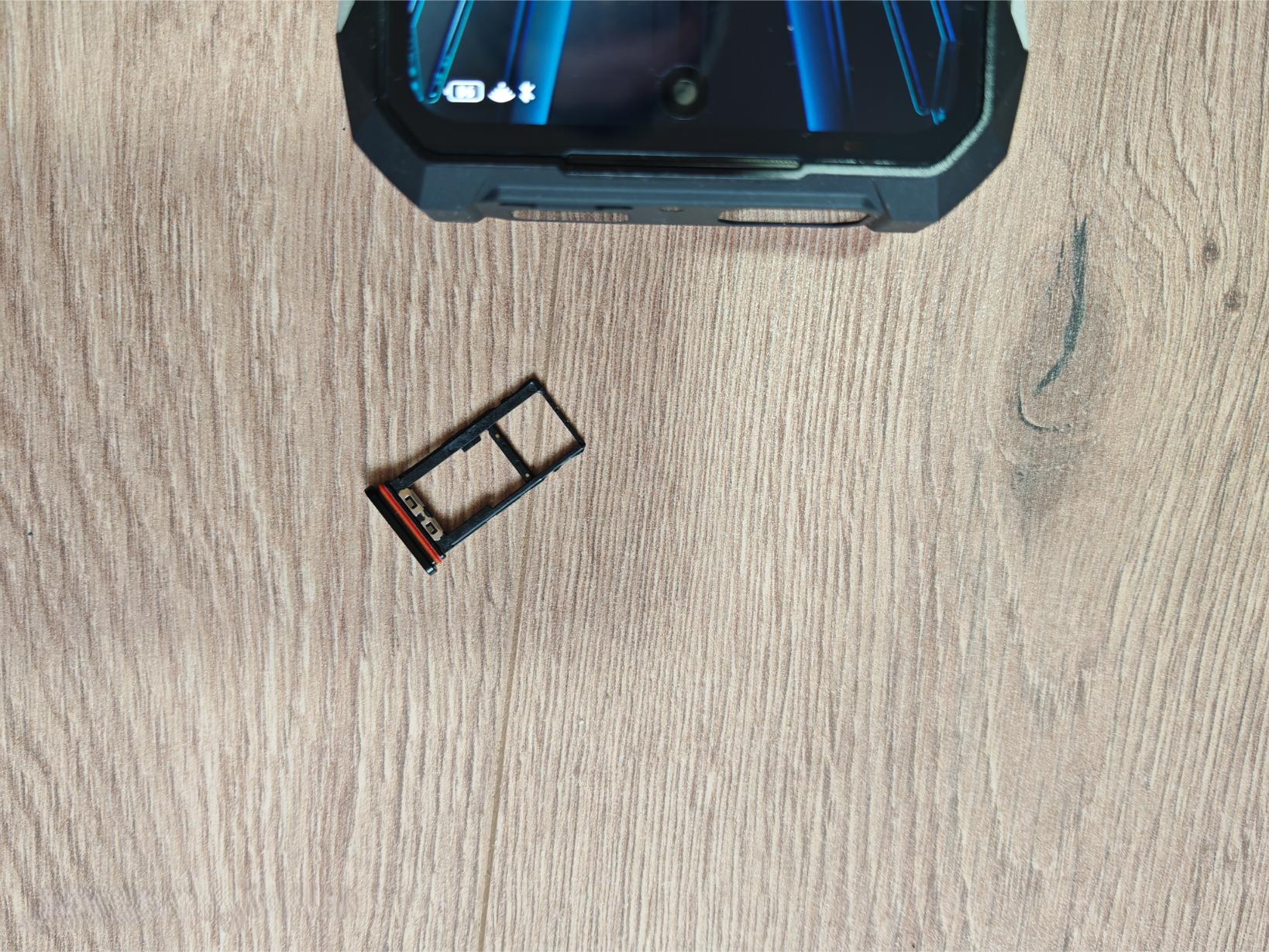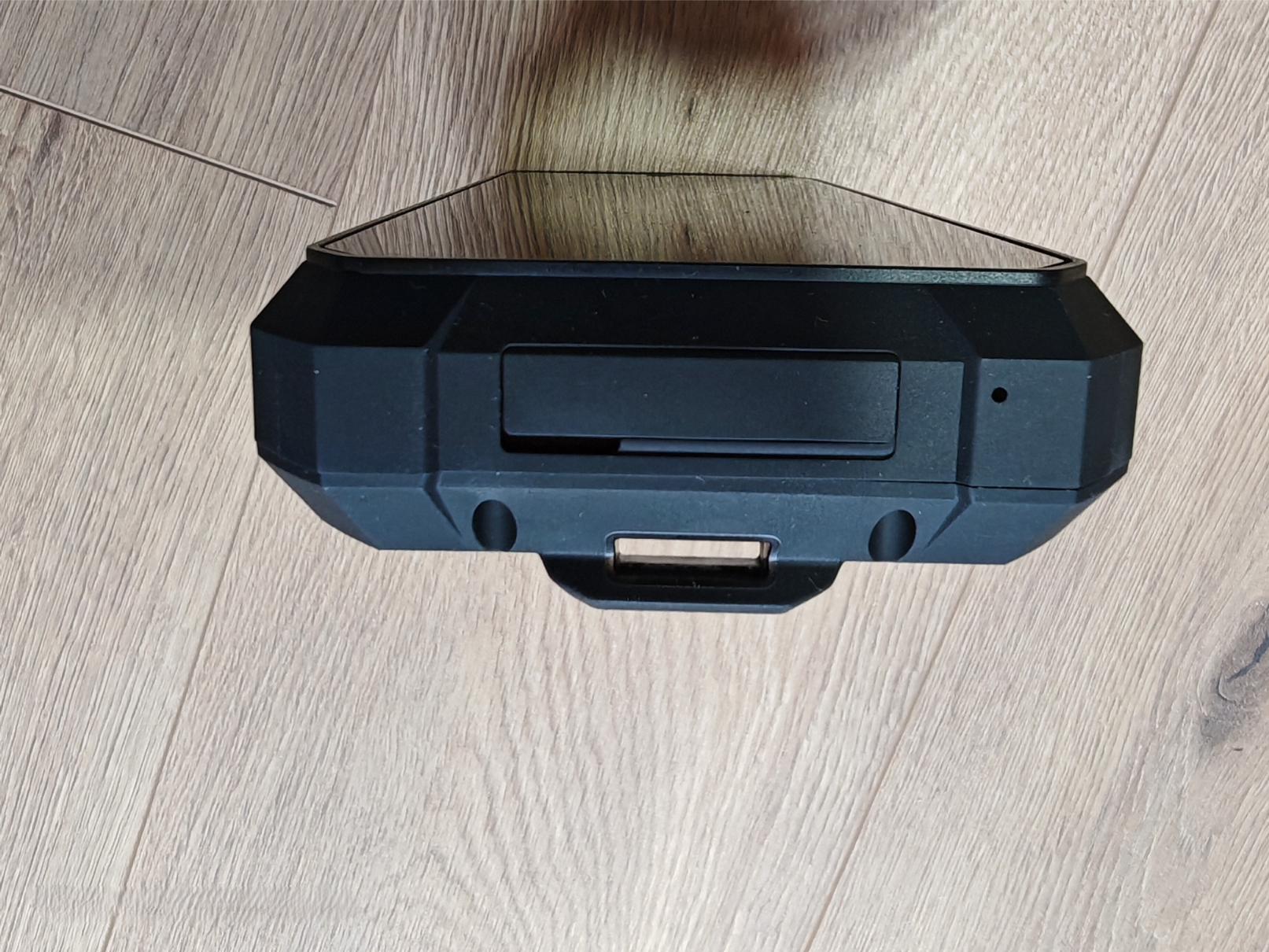 Gleich zwei Sondertasten befinden sich auf der linken Seite des Smartphones. Sie unterscheiden sich nur in der Farbe. Die Tasten für die Lautstärke sind ein Stück höher positioniert und klappern leicht. Der Power-Button mit dem präzisen Fingerabdruckscanner befindet sich auf der rechten Seite unterhalb der riesigen Lüfteröffnungen, die auf beiden Seiten zu finden sind. Dennoch ist das 8849 Tank X nach IP69K wasserdicht und übersteht entsprechende Stürze. Der Scanner erkennt den Finger sicher, als Alternative steht „Face-Unlock“ zur Verfügung. Auf der Unterseite verbergen sich hinter einer Klappe der USB-C-Anschluss 2.0 und der 3,5mm-Klinkenanschluss. Zudem ist nur ein einzelnes Mikrofon verbaut.
