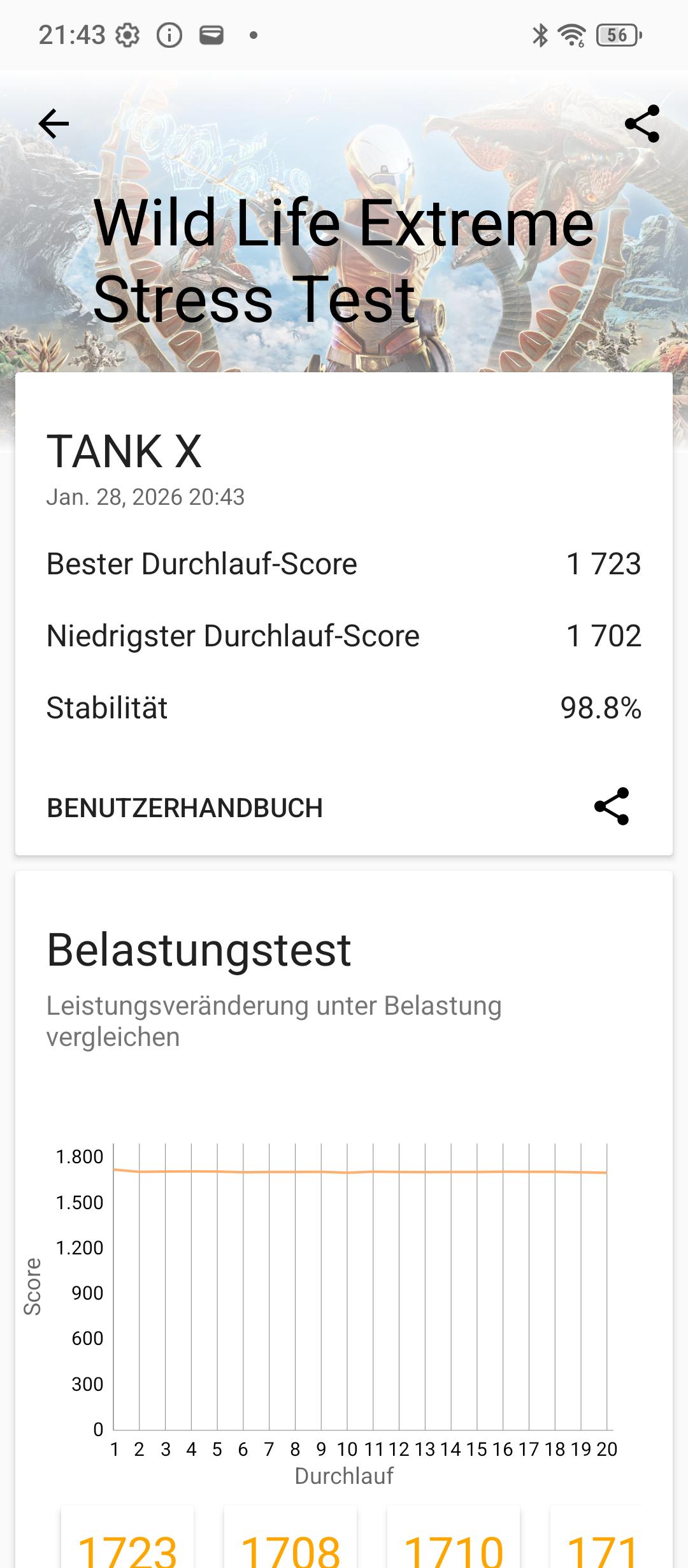 Das System läuft flüssig und setzt Eingaben zügig um. Aufgrund der massiven Abmessungen liegt das Tank X beim Spielen jedoch unbequem in der Hand, was den Gaming-Spaß trotz der leistungsstarken Hardware trübt.