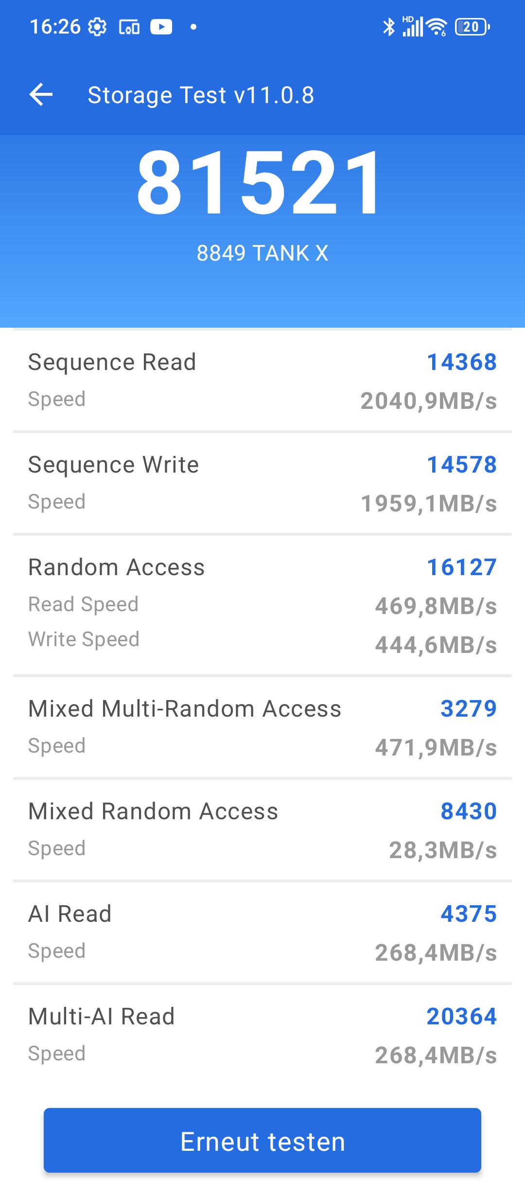 Das Tank X muss die Konkurrenz nicht fürchten und sortiert sich direkt hinter den Top-Modellen ein. Mit 512GB UFS 3.1-Speicher ist auch der interne Speicherplatz großzügig dimensioniert, zumal er sich über eine microSD-Speicherkarte erweitern lässt. Mangelnder Speicherplatz ist dem Smartphone somit fremd und Multitasking stellt kein Problem dar.
