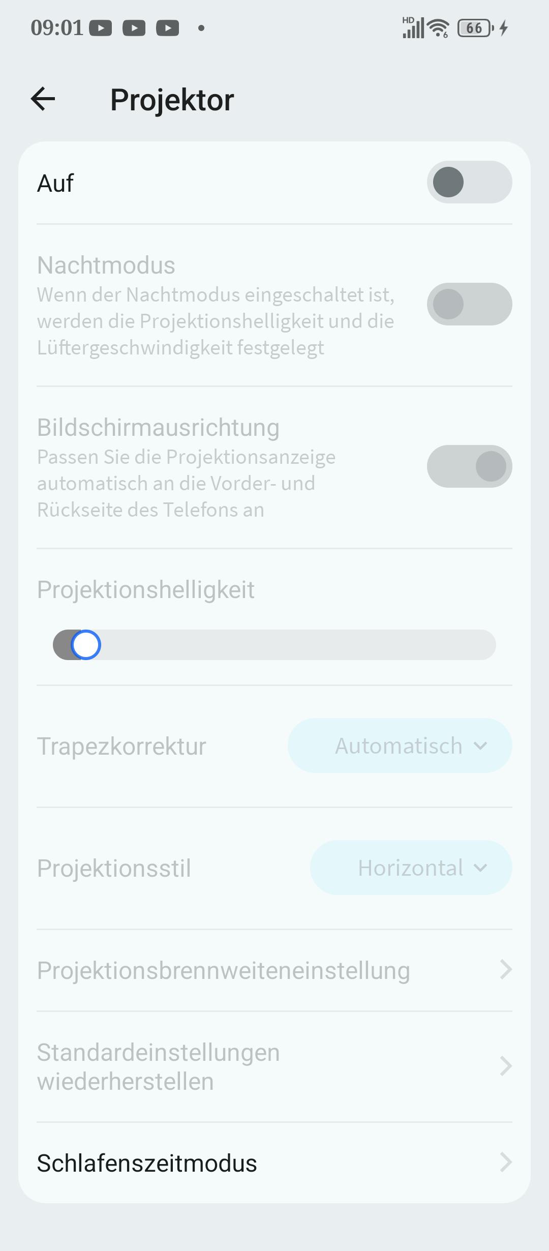Somit stellen drei Tage normale Nutzung kein Problem für den Akku dar. Der Betrieb des Beamers verbraucht am meisten Strom. Reduziert ihr die Bildwiederholungsrate auf 60 Hertz, verlängert das die Laufzeit spürbar. Eine Stunde YouTube-Streaming bei 200 Lux Helligkeit reduziert den Akkustand um 4%.