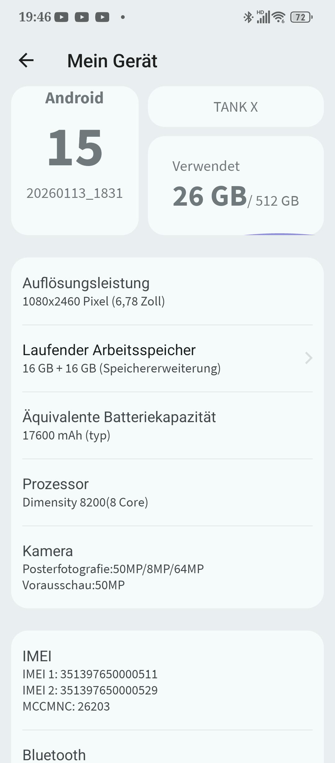 Damit verliert das Tank X den Anschluss an die Konkurrenz, insbesondere an Geräte mit AMOLED-Display. Das Panel bietet immerhin eine Bildwiederholungsfrequenz von 120 Hertz, die das System bei Bedarf auf 60 Hertz reduziert. Ein Zwischenschritt mit 90 Hertz steht ebenfalls zur Wahl. Die Farben wirken ab Werk etwas matt, lassen sich aber in den Einstellungen anpassen, ebenso der Weißpunkt.