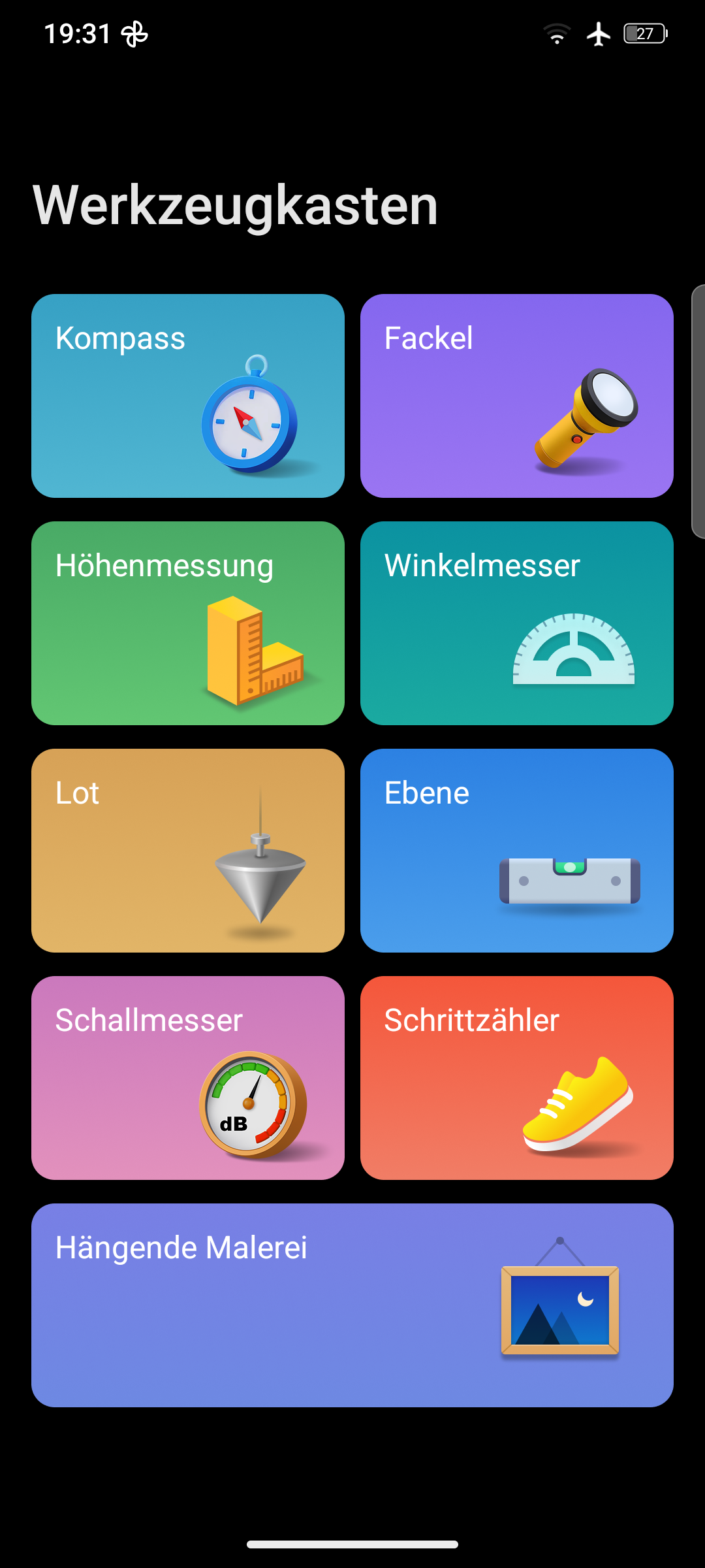 Als Oberfläche kommt beim AGM G3 Pro Android 15 in reiner Version zum Einsatz. Im System finden sich weder Bloatware noch fragwürdige Designanpassungen. Die einzige Abweichung von purer Android-Erfahrung ist die App „Werkzeugkasten“. In dieser stehen diverse Werkzeuge zur Auswahl, die mittels der Sensoren des Smartphones funktionieren. Natürlich ersetzen diese kein professionelles Equipment, für Laien und Hobby-Heimwerker sind die Messungen allerdings absolut ausreichend.