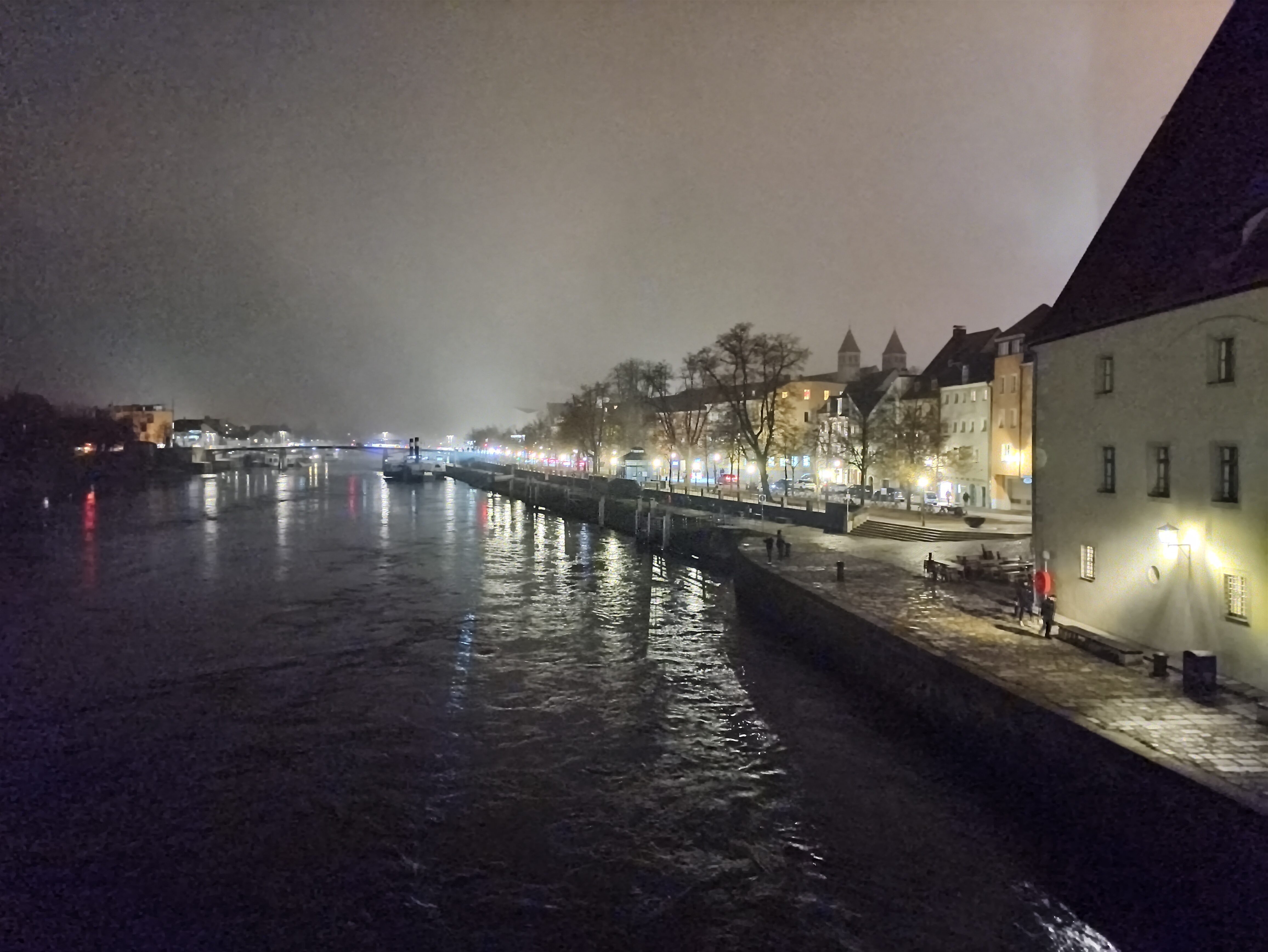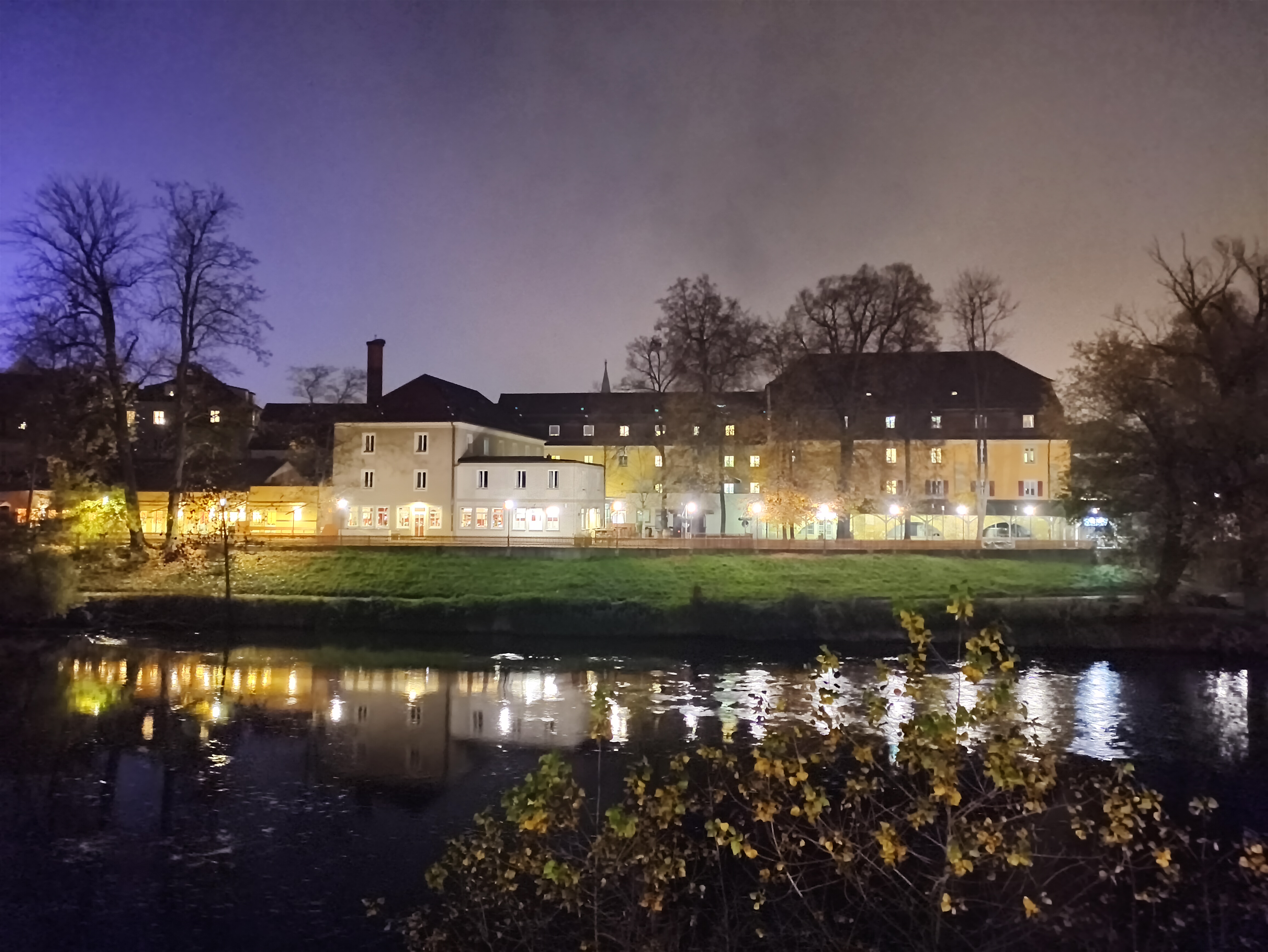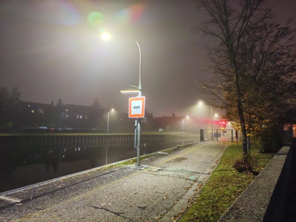 Nachts nimmt die Qualität der Hauptkamera merklich ab, allerdings ist das AGM G3 Pro in der Lage, der Dunkelheit brauchbare Aufnahmen abzutrotzen. Im Nachtmodus werden dunkle Bereiche stark aufgehellt und in diesen tritt ein sichtliches Bildrauschen hervor. Auf regulären Fotos ist dieses nicht ganz so prägnant und die Szene wird realistischer wiedergegeben. Details bleiben auf den Bildern erhalten, Kontraste und Farbdarstellung sind auf Höhe der Konkurrenz. Einzig Lichtquellen werden für das AGM G3 Pro ein zweischneidiges Schwert. Sind diese dunkel genug, fängt das Smartphone diese stimmig ein. Wird der Kontrast zu stark, überstrahlen Lichter oft und es bilden sich Lichthöfe und Lens Flare.
