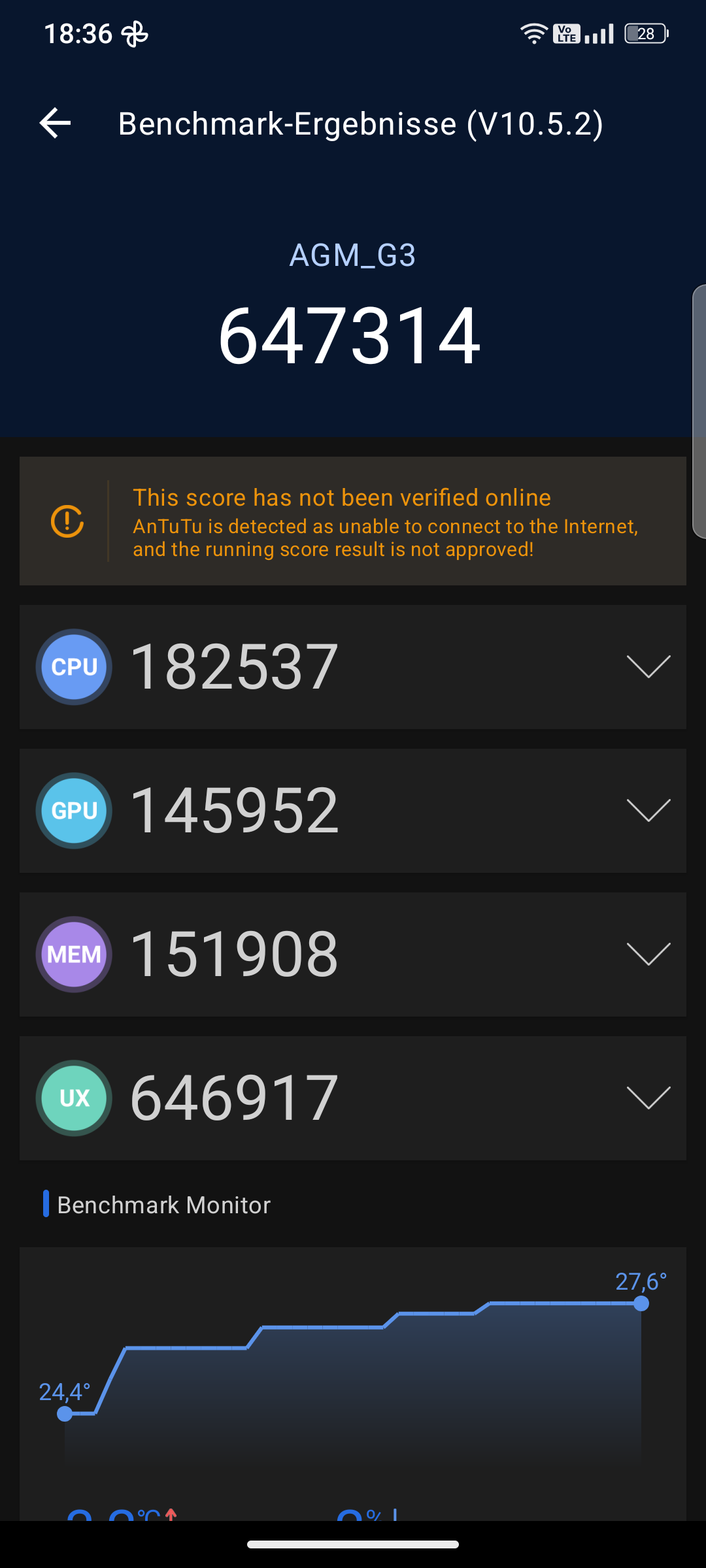 Herzstück des AGM G3 Pro ist MediaTeks MTK7300. Vier Cortex-A75-Kerne (2,5GHz) übernehmen anspruchsvolle Rechenaufgaben, während vier kleinere Cortex-A55-Kerne (2GHz) mit dem Akku des Smartphones haushalten. Die CPU aus dem Jahr 2024 wird im 8nm-Prozess gefertigt und liefert in den gängigen Benchmarks solide Ergebnisse in der Mittelklasse. Eine Mali-G615 übernimmt grafische Berechnungen und eine Mediatek MPU 615 KI-bezogene Aufgaben.