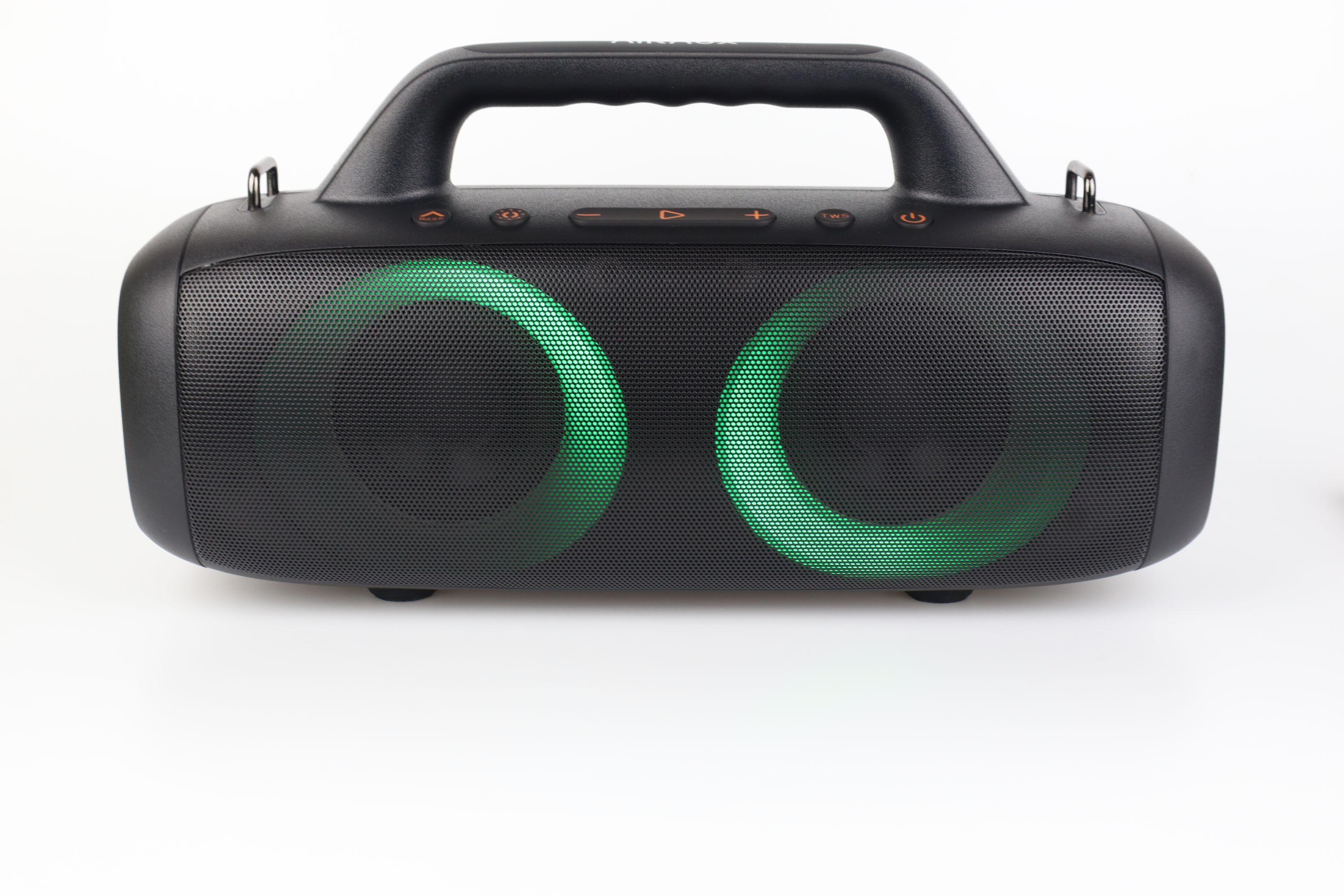 Im September hatte euch Erik bereits den Release des Lautsprechers angekündigt. Dort konnten wir auch schon einen ersten Eindruck erhaschen, was uns letztlich erwartet. Seine semi-euphorische Einschätzung war im ersten Moment auch völlig gerechtfertigt, da uns hier keine Wundertüte präsentiert wurde. 50W Gesamtleistung, coole RGB-Beleuchtung an der Vorderseite, Bluetooth 5.1, 4500 mAh Akku und IPX5 sind jetzt keine Spezifikationen, die einem die Tränen in die Augen treiben. Ein Special wäre hier vielleicht die „rhythm following dynamic“ RGB Beleuchtung. Schön ist hier auch die TWS Funktion, mit dem wir uns mit einem zweiten Lautsprecher koppeln können, auch wenn das mittlerweile schon fast Standard ist. Das hebt dann die Gesamtleistung auf 100W und kann schon ordentlich Dampf machen, wenn die Party etwas größer ist. Doch letzten Endes ist das alles „nur“ Theorie und gerade im Audio Bereich sagt das oft gar nicht mal so viel aus.