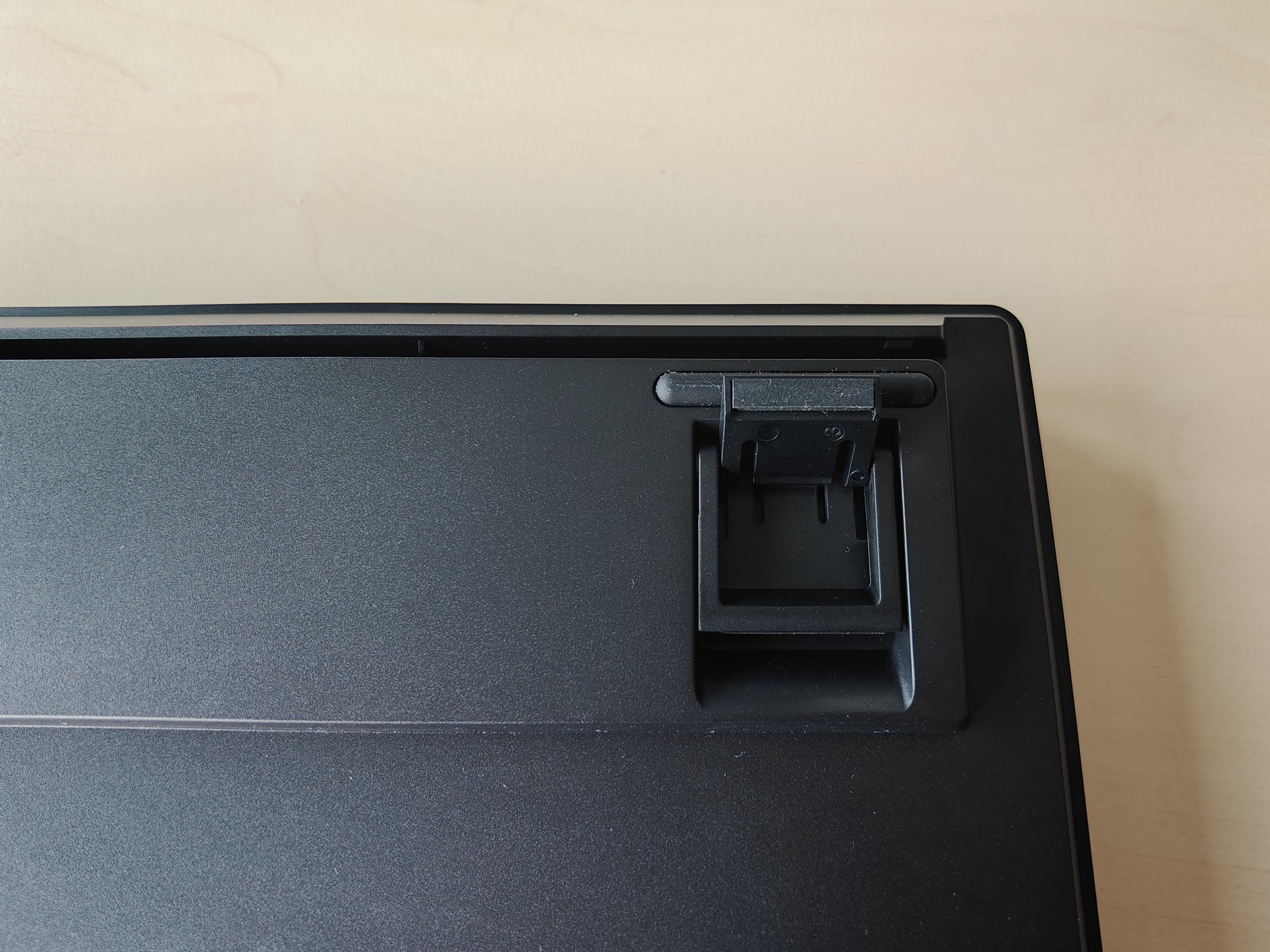 Zwar besteht die Tastatur komplett aus Kunststoff (für die Tasten kommt PBT und für den Rahmen ABS zum Einsatz), das Gewicht von satten 1,2 Kilogramm lässt sie jedoch sehr wertig wirken. Hat allerdings den Nachteil, dass sie trotz Bluetooth 5.0 und 2,4GHz-Dongle nicht ganz so mobil einsetzbar ist. An der Rückseite der Tastatur befindet sich ein Fach für den Dongle.