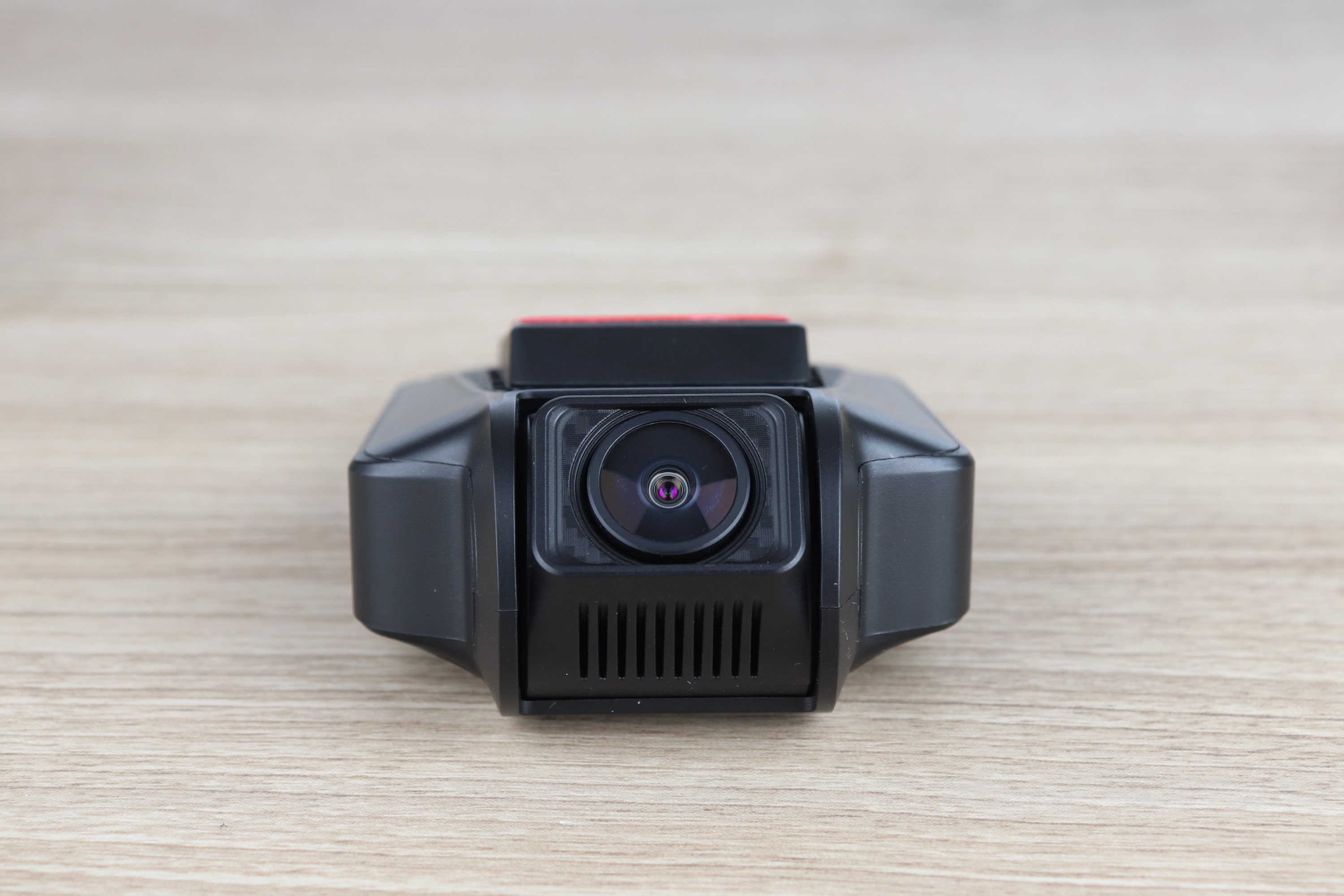 Sehr praktisch ist, dass man den Winkel des Objektives verstellen kann. Da Windschutzscheiben durchaus verschiedene Winkel haben, kann man den Winkel der Aufnahme entsprechend anpassen, um möglichst viel Material auf dem Bild zu haben. Sonst kann es passieren, dass ein großer Teil der Aufnahme nur die Motorhaube zeigt, oder den Himmel. Das ist tatsächlich ein großer Vorteil gegenüber der Konkurrenz.