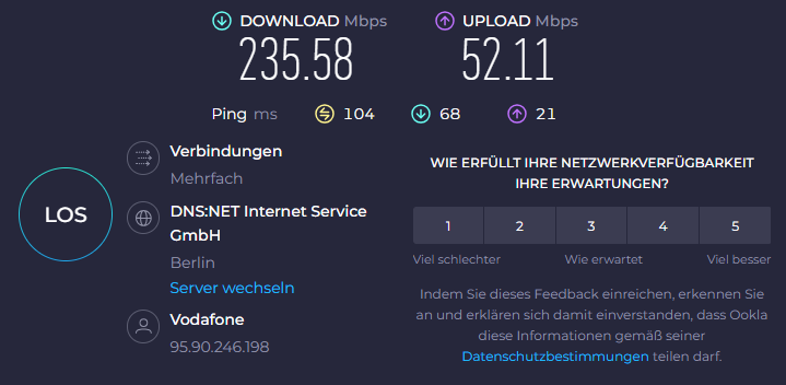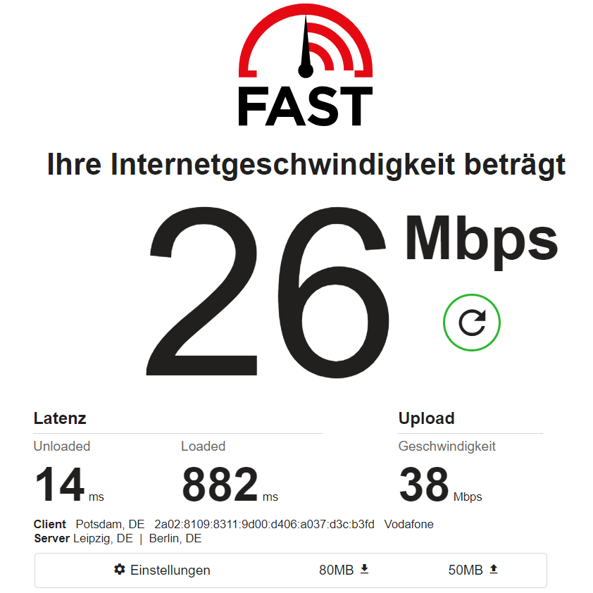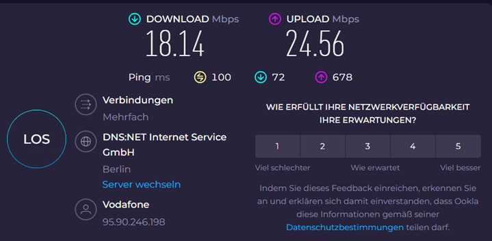 Die Screenshots zeigen die Werte an meinem Heimarbeitsplatz, der zwar durch eine Wand, aber nur gut 3 Meter vom Router entfernt ist. Der zweite Screenshot stammt aus der Küche, die etwa 10 Meter vom Router entfernt und durch zwei Wände getrennt ist. An diesem Ort ist mobiles Arbeiten ohne zusätzlichen WLAN-Repeater bei anderen Laptops teilweise nicht möglich. Die Stabilität der Verbindung war mit dem Ninkear aber nie ein Problem.