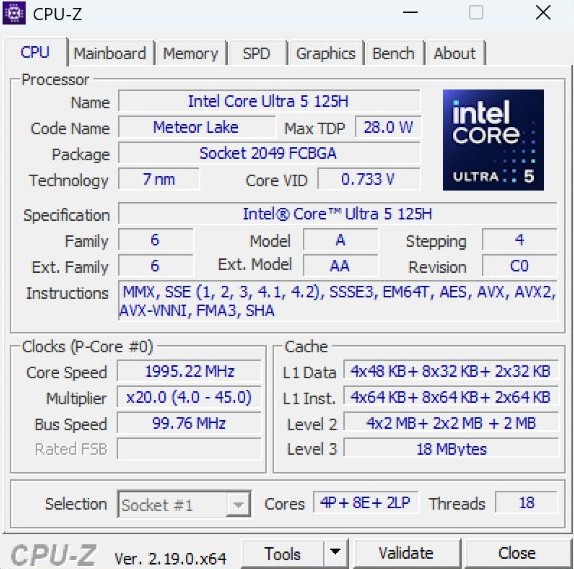 | Prozessor | Intel Core Ultra 5 125H (14 Kerne, 18 Threads) |