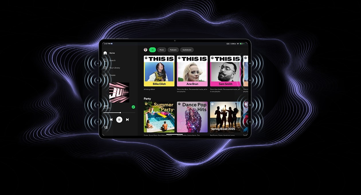 Dafür sind gleich acht Lautsprecher im Alldocube Ultra Pad verbaut, die den Anspruch als gutes Medientablet unterstreichen. Der Sound ist DTS-zertifiziert und ein entsprechender Equalizer ist vorhanden. Ob sich das aufwendige Setup lohnt, kann nur ein Test klären. An Sensoren sind die wichtigsten für ein Tablet integriert. Der Helligkeitssensor kümmert sich um die automatische Helligkeitsregulierung, während der Hall-Sensor für smarte Schutzhüllen praktisch ist. Ein Beschleunigungssensor ist ebenfalls an Bord. Ein Fingerabdrucksensor fehlt allerdings.