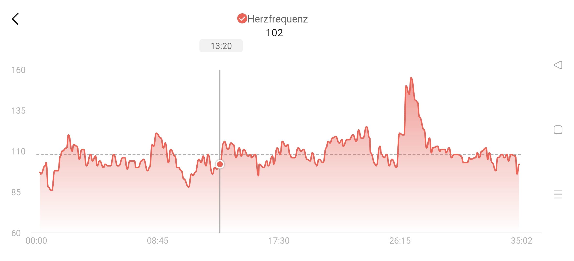 Die Kurven sind bei weitem nicht identisch, aber die durchschnittliche Pulsrate von 108 Schlägen je Minute bei der Uhr und 112 Schlägen je Minute beim Brustgurt unterscheiden sich nicht stark voneinander. Um dieses halbwegs genaue Ergebnis zu erhalten, musste ich das Armband der Amazfit T-Rex 3 Pro sehr stramm ziehen. Aufgrund von Größe und Gewicht sitzt die Uhr sonst nicht richtig und die Werte sind völlig daneben. Das bedeutet auch, dass die Pulsmessung und die Auswertung in der Praxis unbrauchbar sind.