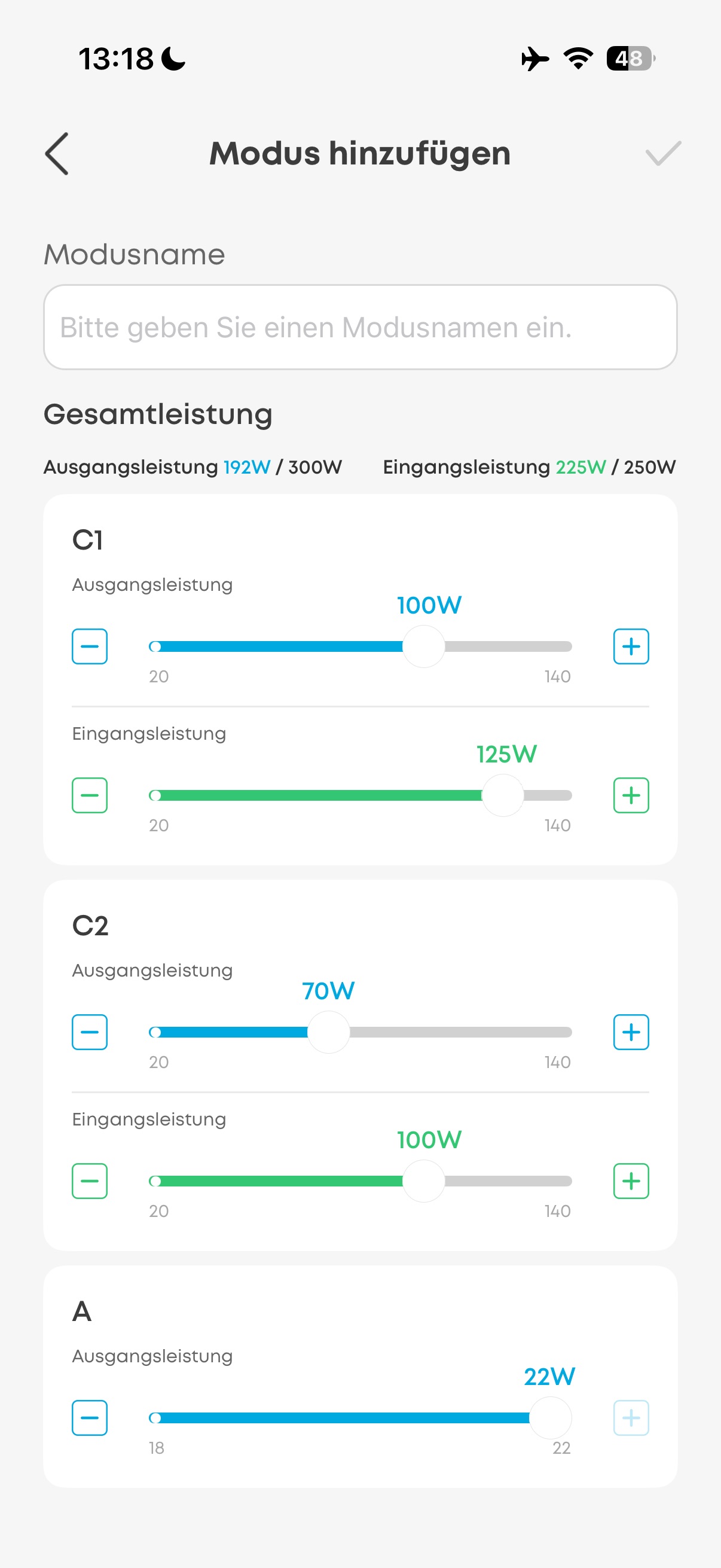 Auf dem Papier wurde der Input von 170W beim alten Modell auf stolze 250W über zwei USB-C-Ports gesteigert. Und tatsächlich lässt sich die Powerbank auch mit diesen Werten aufladen, jedoch lohnt sich auch hier ein genauerer Blick und Vergleich zu dem Vorgänger-Modell. Passthrough-Charging wird unterstützt, allerdings ohne USV-Support.