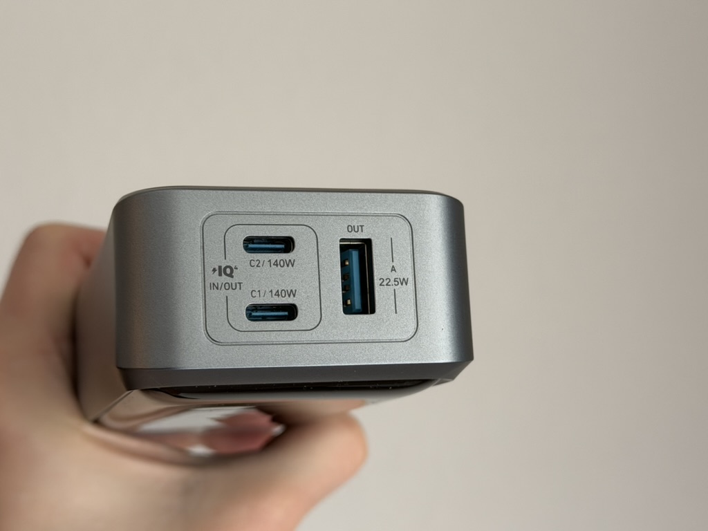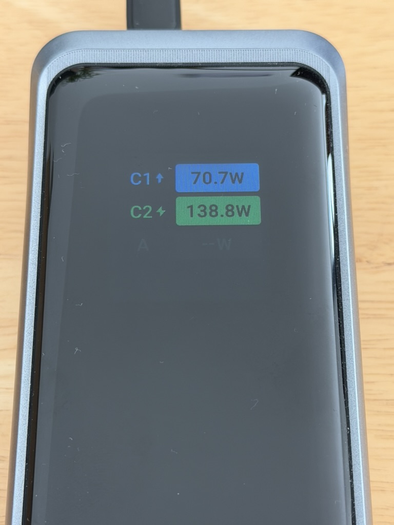 Die maximale Leistung pro Port (C1/C2) wird mit 140W Power Delivery angegeben. Was aber nicht automatisch bedeutet, dass jedes angeschlossene Gerät diese Ladung auch erhalten kann. Hier kommen die Ladestandards ins Spiel, die die Leistung definieren.