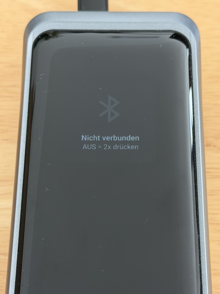 Auf der Startseite seht ihr den Akkustand in Prozent sowie die Auf- oder Entladungsleistung. Auf einer zweiten Seite seht ihr die Leistung der Ports im Einzelnen, nur in Watt ohne Angabe von Volt und Ampere. Das bot auch der 250W-Vorgänger noch! Die Anzeige zur Akkutemperatur ist sehr rudimentär gehalten und gibt keine Temperaturwerte in °C an, was die Nützlichkeit stark in Frage stellt. Auch hier lag das Vorgänger-Modell vorn und zeigte die genauen Werte direkt im Display an, beim 300W-Modell müsst ihr hingegen auf die App zurückgreifen. Ermöglicht wird dies über eine Bluetooth-Verbindung.