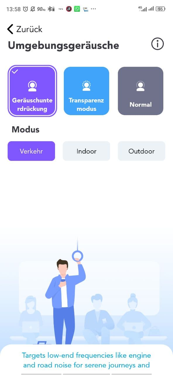 In der Theorie klingt es super, verschiedene Modi zu haben. Es gibt sogar Widgets für das Smartphone, um diese schnell umschalten zu können. Aber Ihr könnt es euch denken: In der Praxis gibt es kaum Unterschiede zwischen den ANC-Modi.