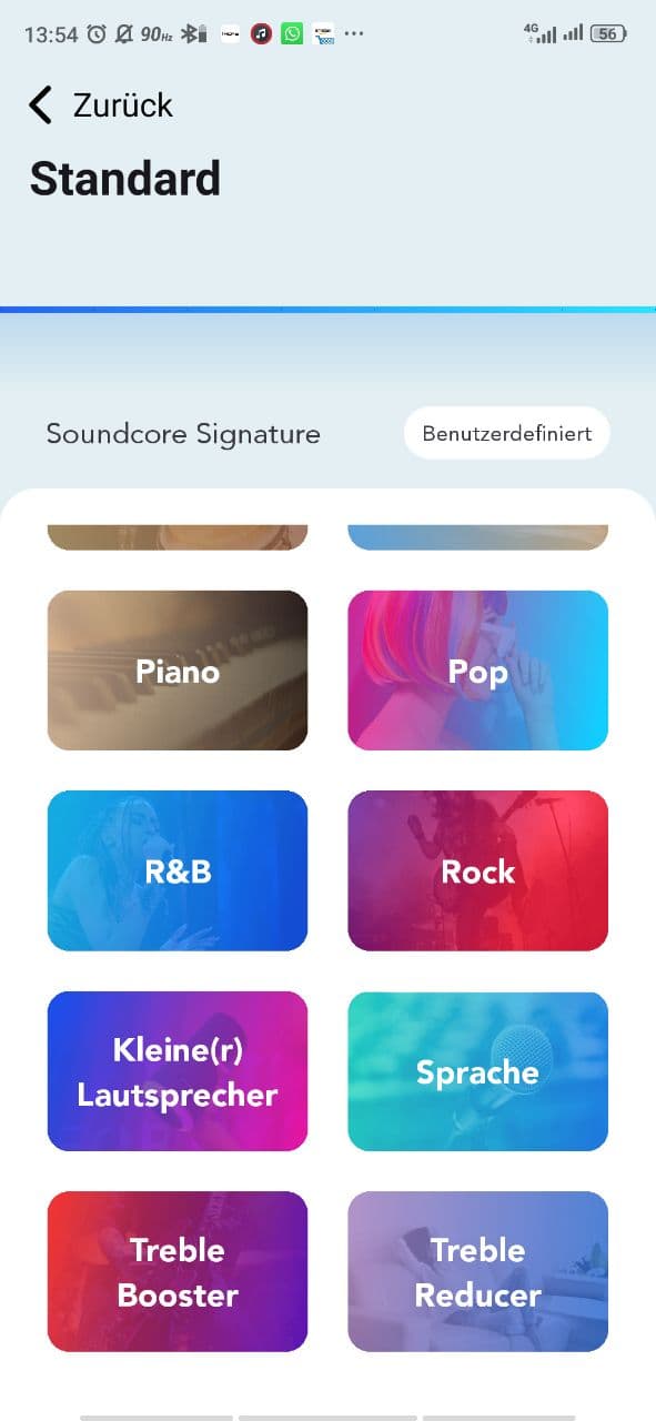 Neben den üblichen Schmankerln wie eine detaillierte Akkuanzeige oder die Möglichkeit Firmware Updates aufzuspielen, genehmigt Soundcore den Life Q30 auch noch einen Equalizer. Dieser hat viele voreingestellte Settings. 22 um genau zu sein. Er ist aber auch völlig frei einstellbar.