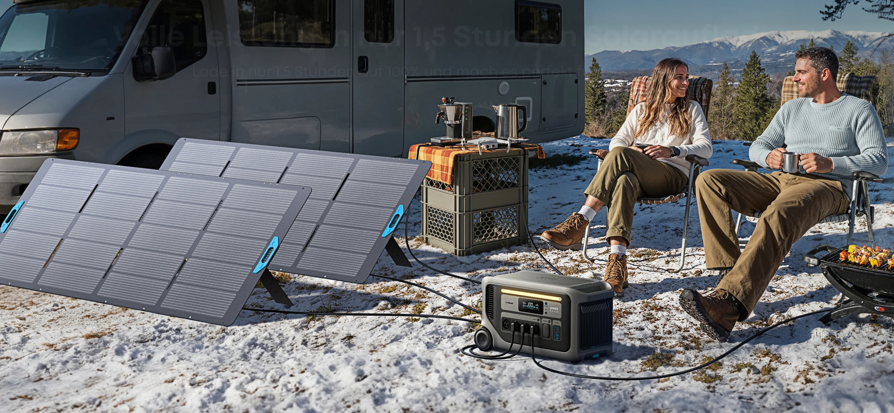 Für alle, die netzunabhängig agieren möchten und Wert auf höchste Leistung sowie enorme Kapazität legen, hat Anker die neue Solix F3000 entwickelt. Dank der Kapazität von 3.072Wh und einer Dauerleistung von 3.600W sollte sich jedes elektrische Gerät versorgen lassen. Mit Abmessungen von 65,1 x 30 x 37,7cm und einem Gewicht von 41,5kg gehört die Powerstation zu den Schwergewichten, die sich aber dank der zwei Rollen und des ausziehbaren Griffes vergleichsweise leicht transportieren lässt.