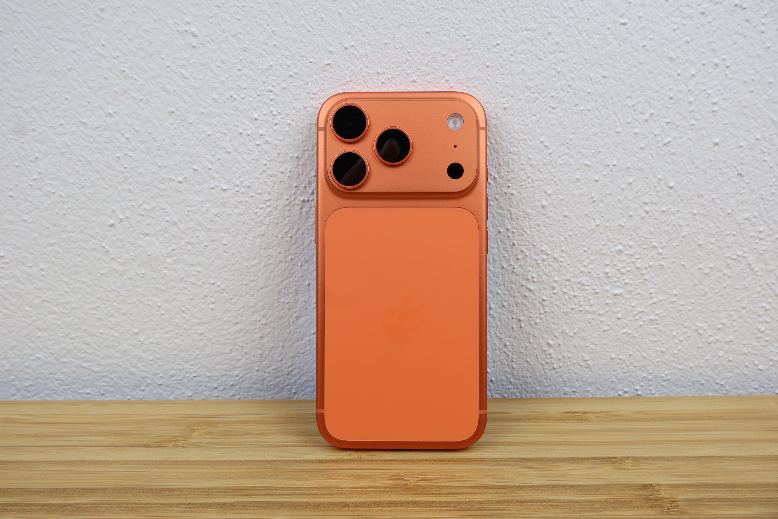 Auch die Ladezeit hätte ich mir schlimmer vorgestellt. Der kleine Akku spielt hier natürlich auch eine Rolle: An einem handelsüblichen Power-Delivery-Ladeadapter ab 40W oder mehr erreicht ihr in 30 Minuten knapp 70%. Auch kurzes Zwischenladen ist mit ca. 40% in 15 Minuten kein großes Problem für das iPhone 17 Pro. Mit einer Stunde und 15 Minuten von 1 auf 99% ist eine komplette Ladung dennoch langsam im Vergleich zur Konkurrenz. Für alle Fans des kabellosen Ladens bietet Apple mit MagSafe- bzw. Qi2-Unterstützung den Goldstandard. Damit hält entsprechendes Zubehör magnetisch an der Rückseite, und Ladeleistungen von bis zu 25 Watt sind auch kabellos mittels Qi2.2 möglich. Im Idealfall erreicht ihr so 50% Akku in ca. 20 Minuten und sogar 80% in 40 Minuten. Also gegenüber Samsung und Google hat Apple beim Aufladen tatsächlich die Nase vorn!