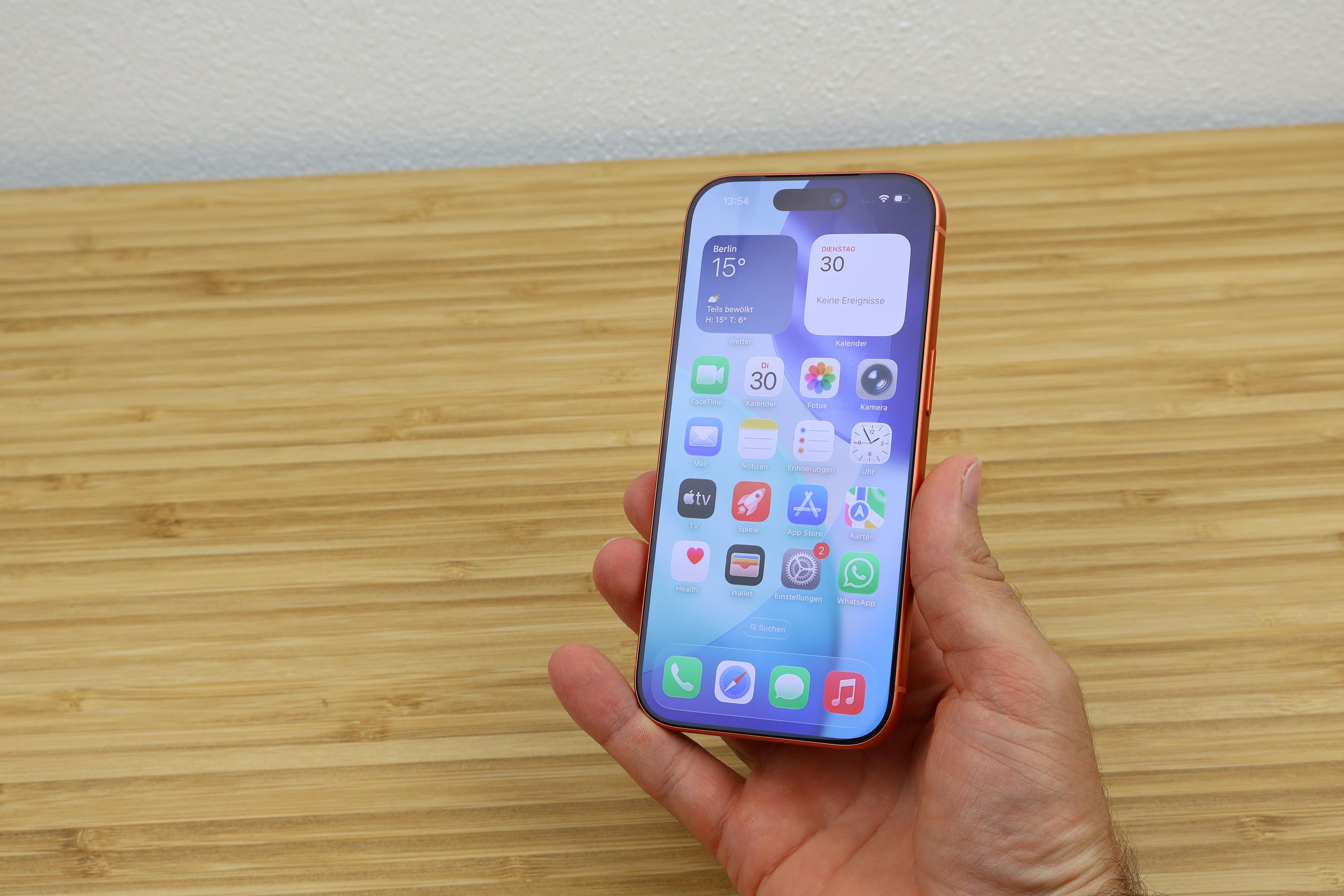 Features wie VoLTE (Telefonie über das LTE-Netz), VoNR (Telefonie über das 5G-Netz – wenn vom Netzanbieter freigeschaltet) und VoWiFi (Telefonie über das WLAN) werden unterstützt. Kurzer Ausflug nochmal zum System: Offen gestanden, wirkte auf mich auch das Telefonieren mit der iOS-Telefon-App einfach komplizierter, als ich das von Androids Standard-App etwa gewohnt bin. Aber zurück zur Konnektivität, denn der Empfang war durchweg auf gutem Niveau. An meinen bekannten Netzlücken war die Empfangsleistung des iPhone den besten Android-Konkurrenten etwas unterlegen, aber in den meisten Fällen wird das keinen Unterschied machen. Gerade der Wechsel einzelner Funkzellen ging nicht ganz so flott vonstatten. Apple gibt offiziell einen SAR-Wert von 1,49W/kg für Kopf und Körper an.