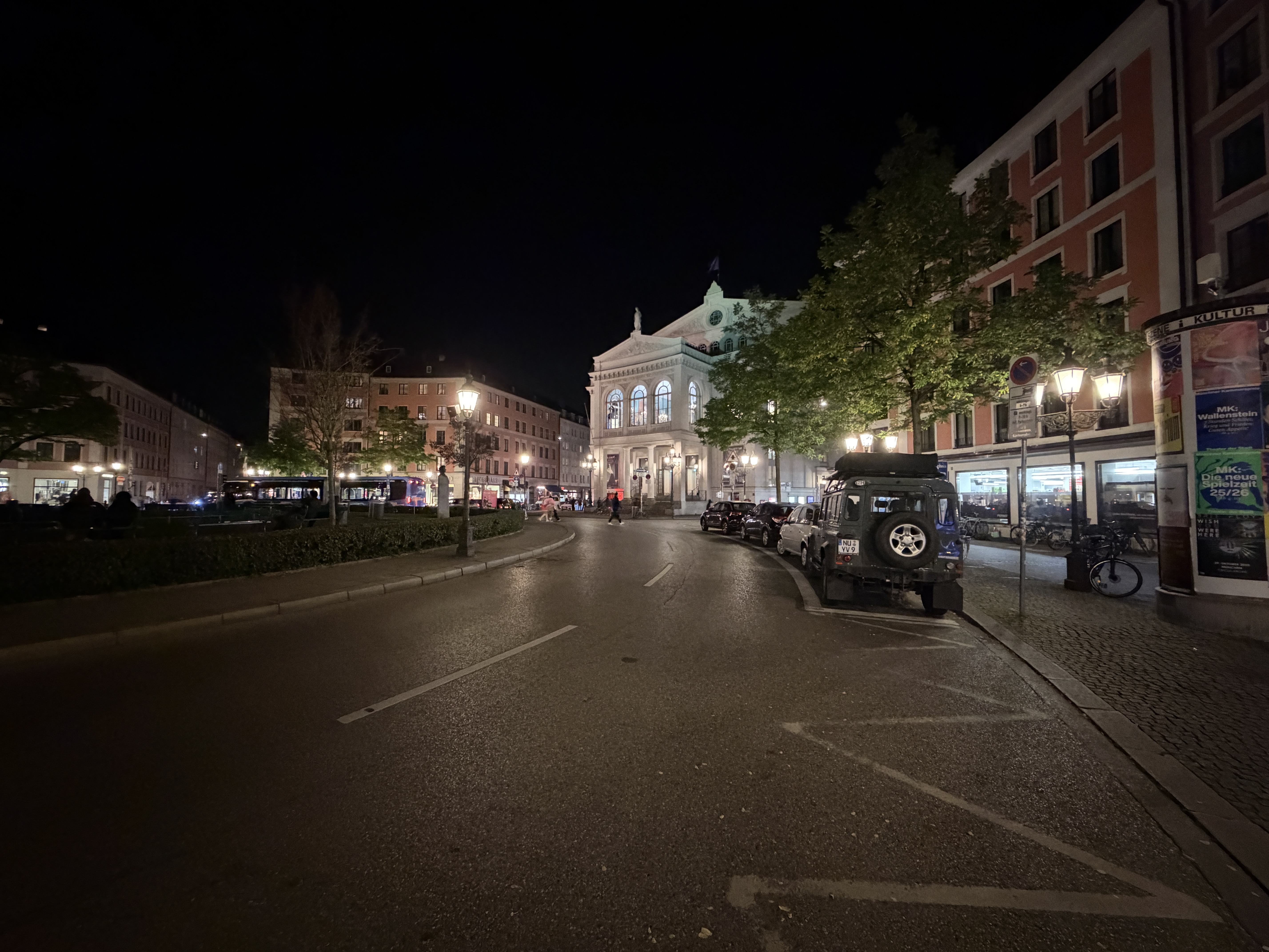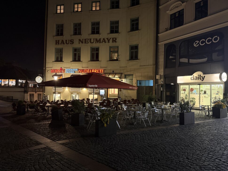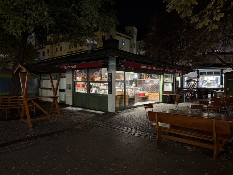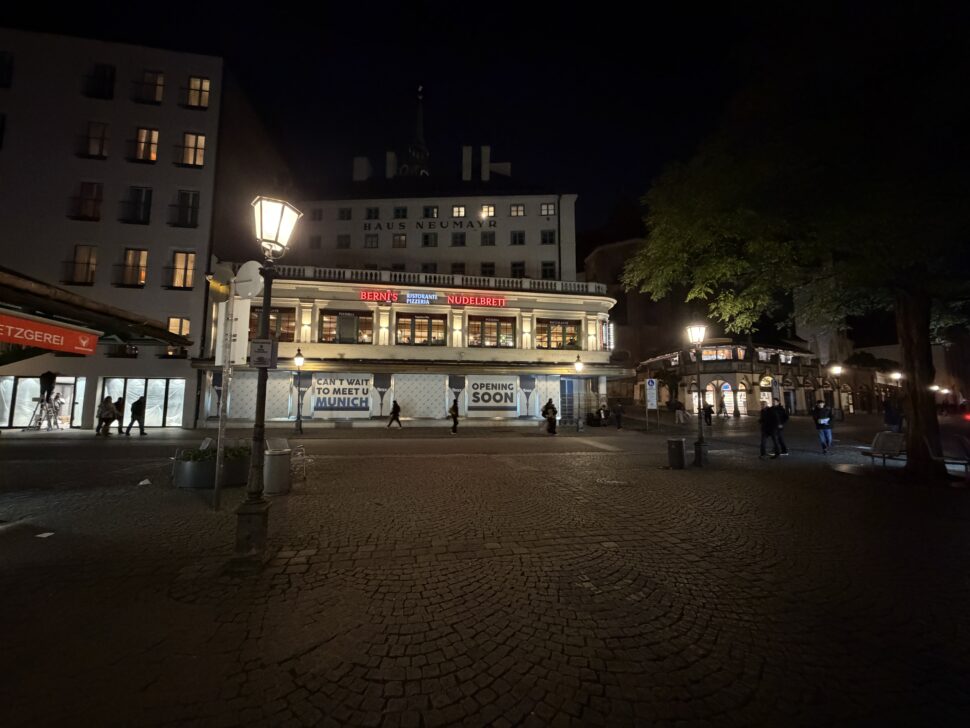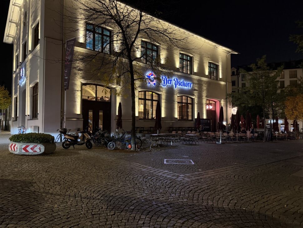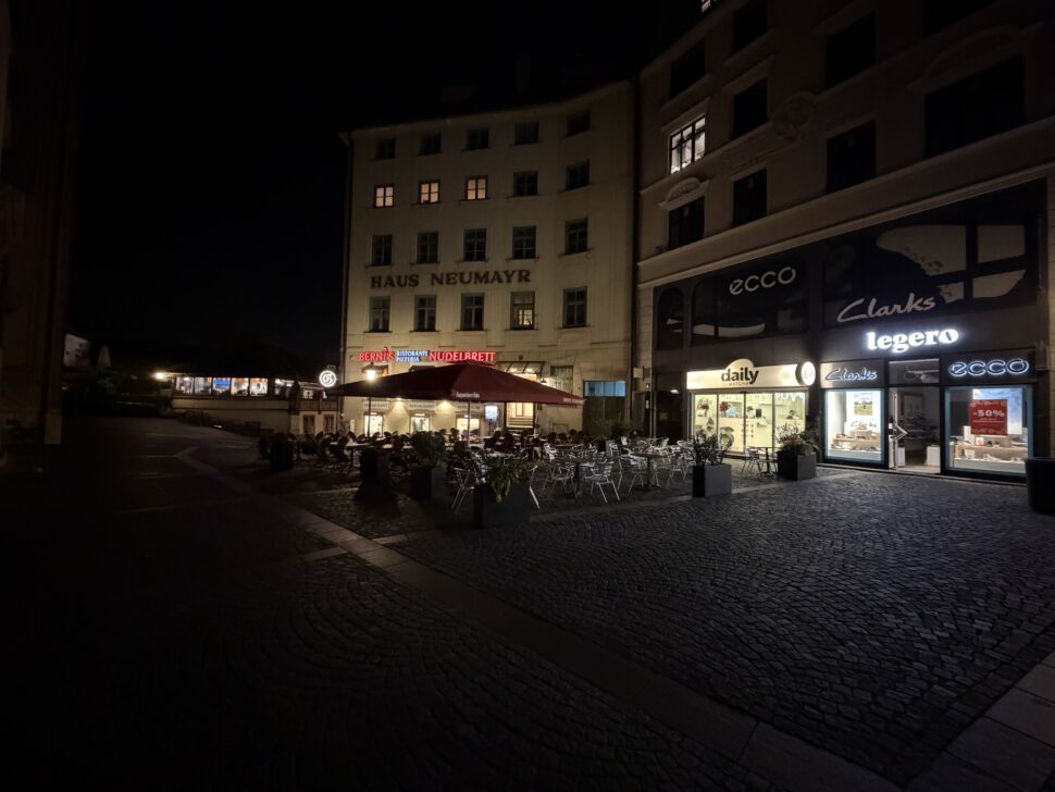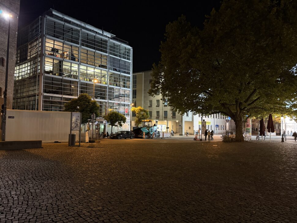 Der Auto-Nachtmodus greift nur selten ein, dafür liefert das iPhone exzellente Details mit leichter Körnung in dunklen Bereichen und überzeugt mit guter Dynamik auch bei Lichtquellen. Der Weißabgleich ist verlässlich und die Farben wirken stimmig. Auch 2-fach-Zoomaufnahmen sind mit der Hauptkamera bei Nacht kein Problem und voll überzeugend.