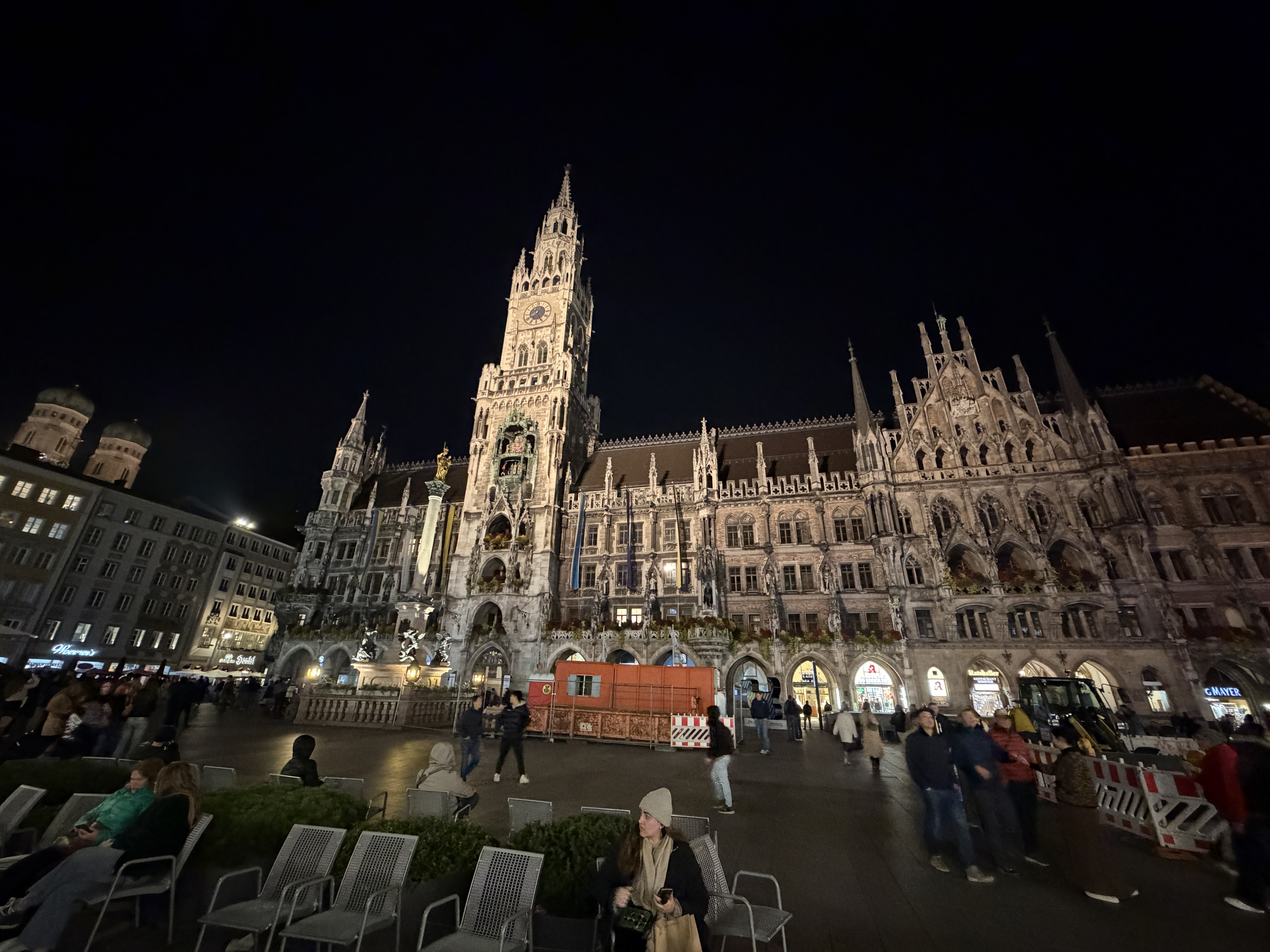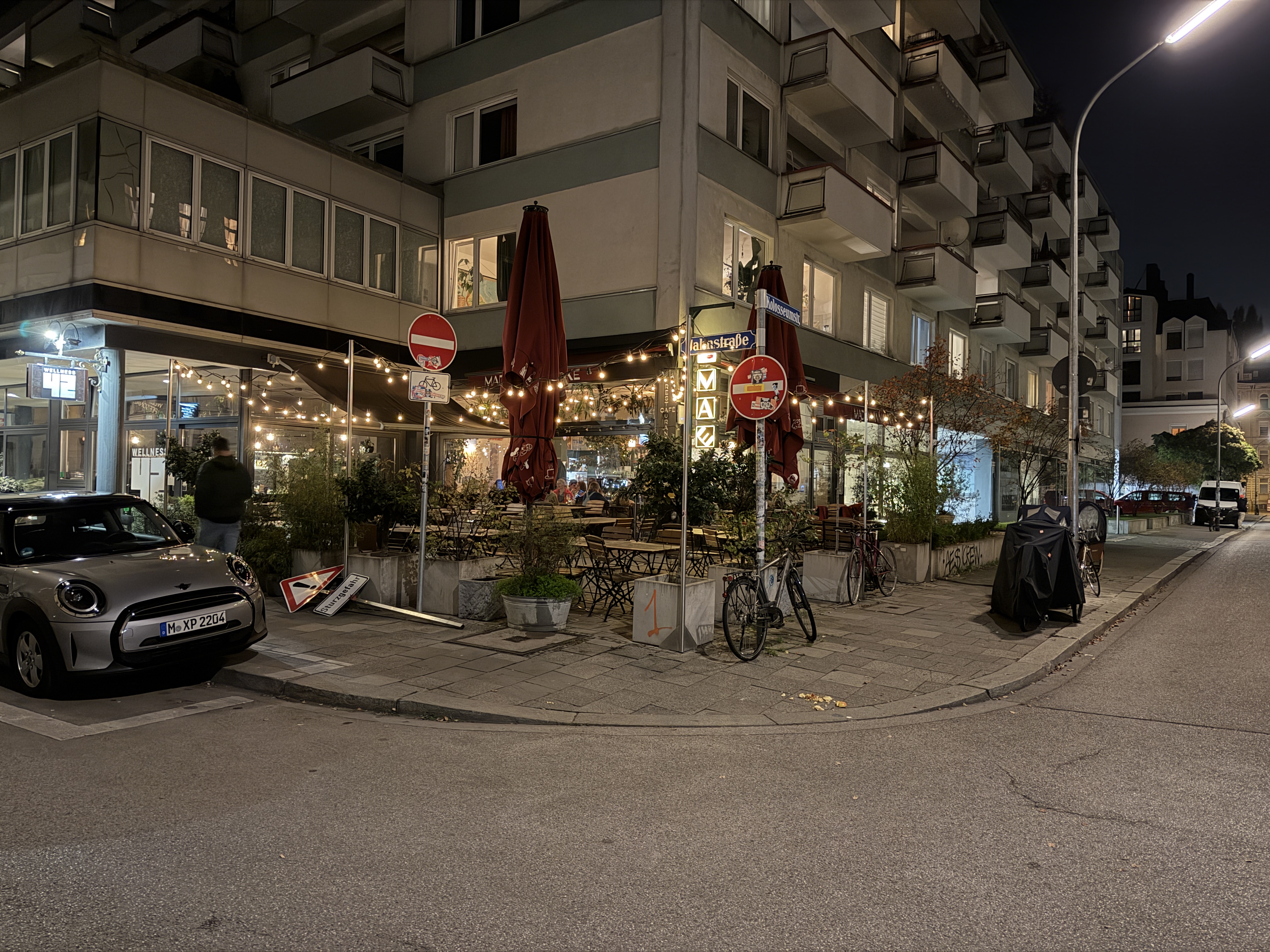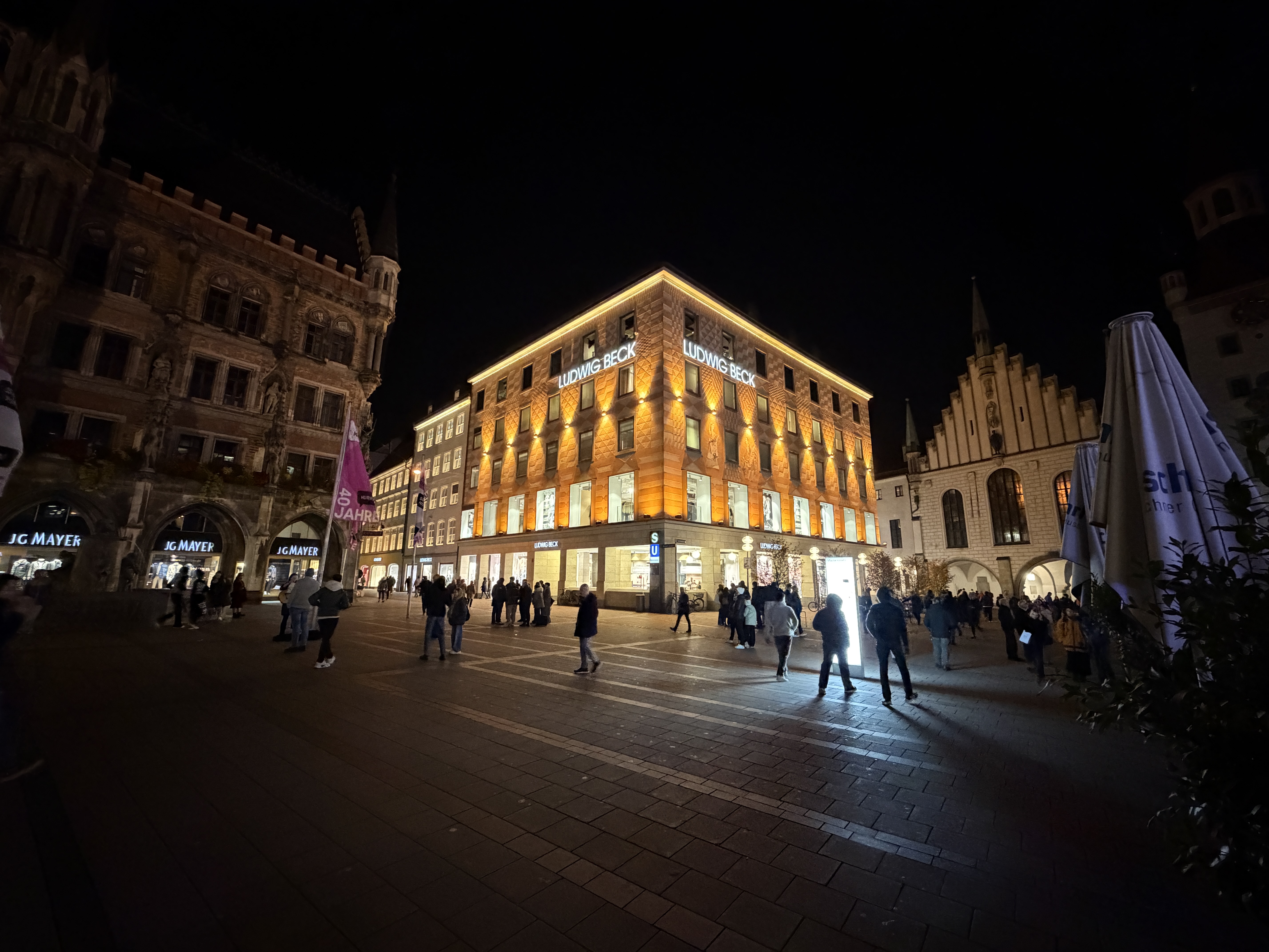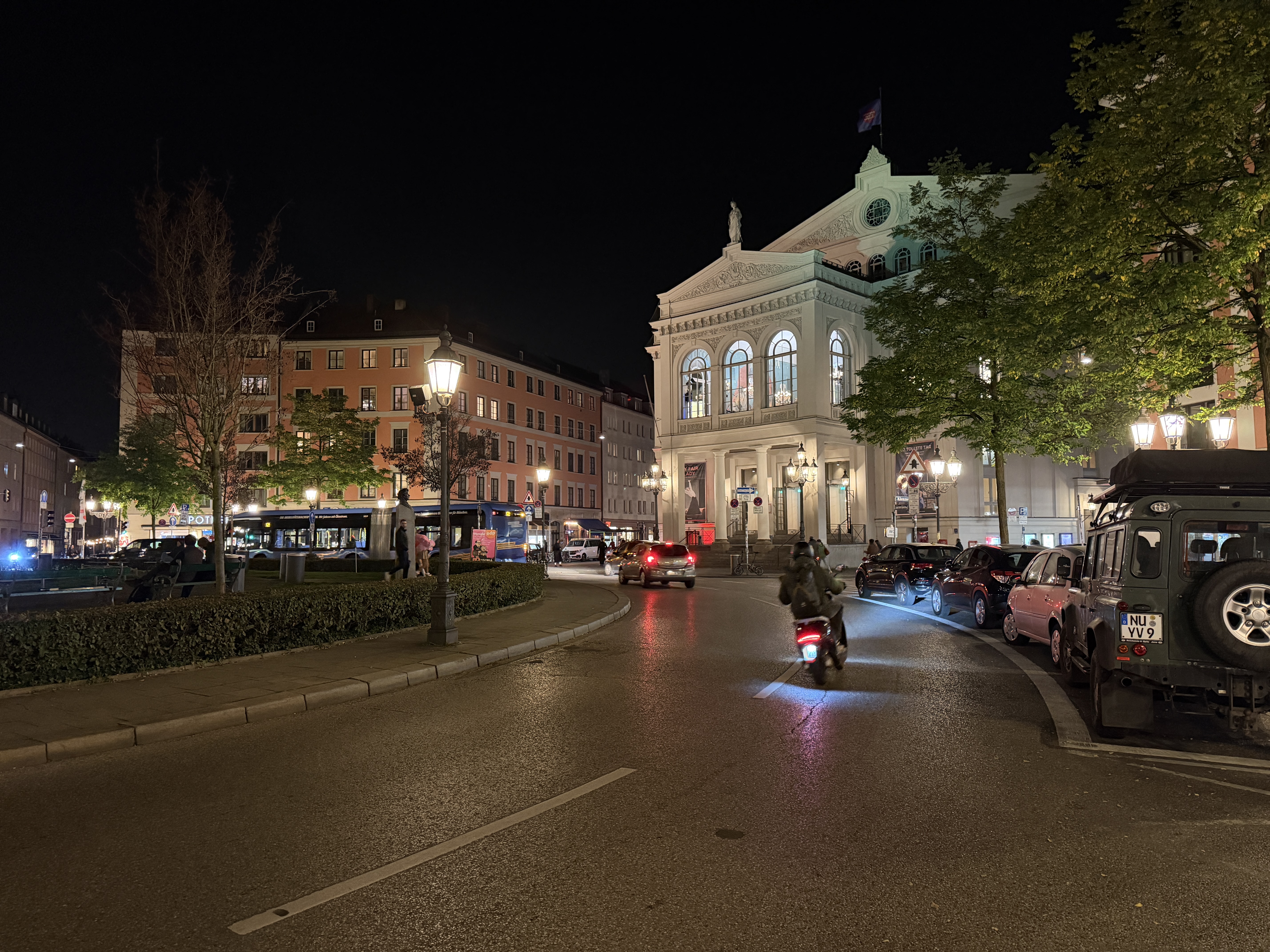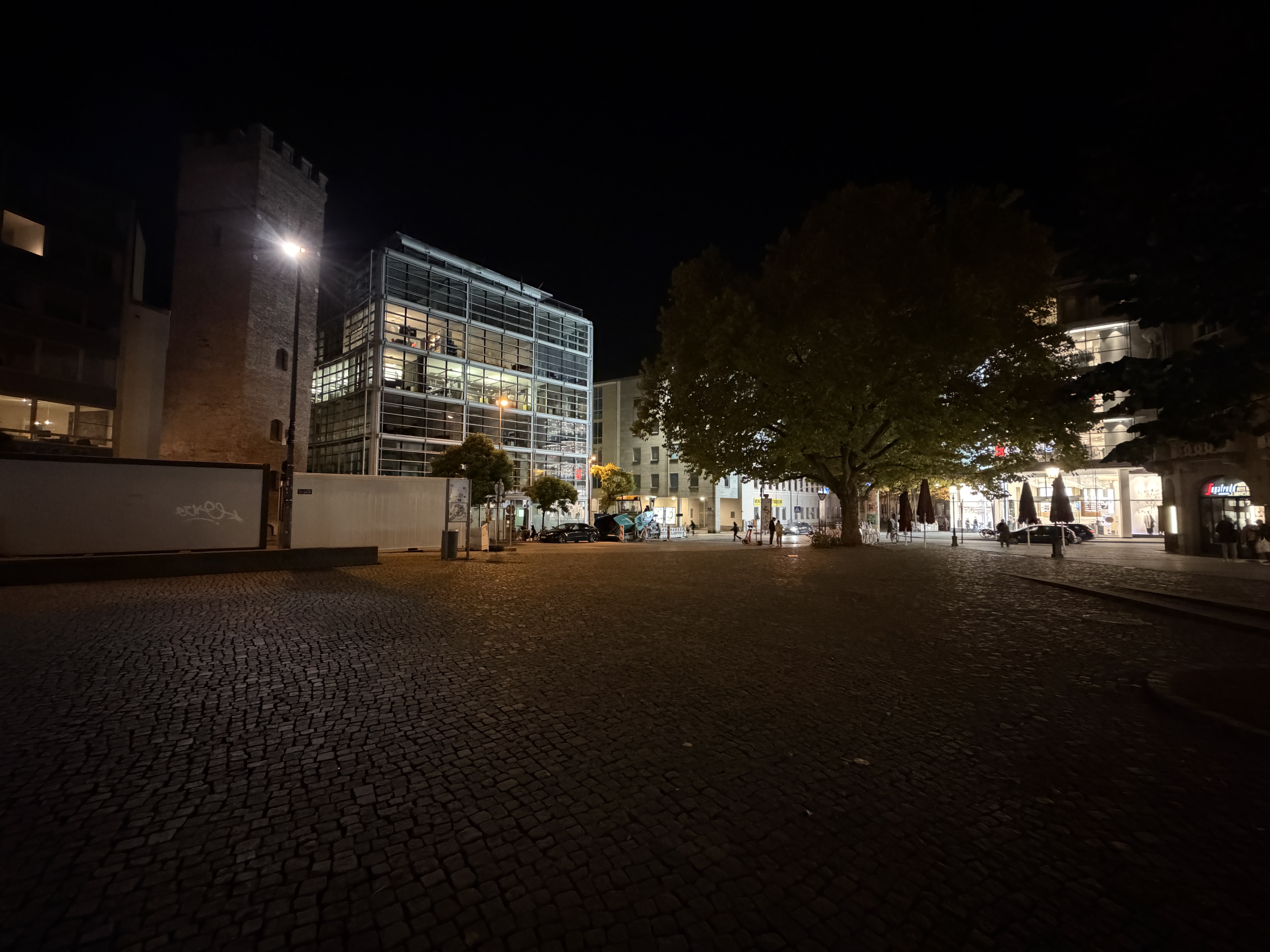 Der Auto-Nachtmodus greift nur selten ein, dafür liefert das iPhone exzellente Details mit leichter Körnung in dunklen Bereichen und überzeugt mit guter Dynamik auch bei Lichtquellen. Der Weißabgleich ist verlässlich und die Farben wirken stimmig. Auch 2-fach-Zoomaufnahmen sind mit der Hauptkamera bei Nacht kein Problem und voll überzeugend.