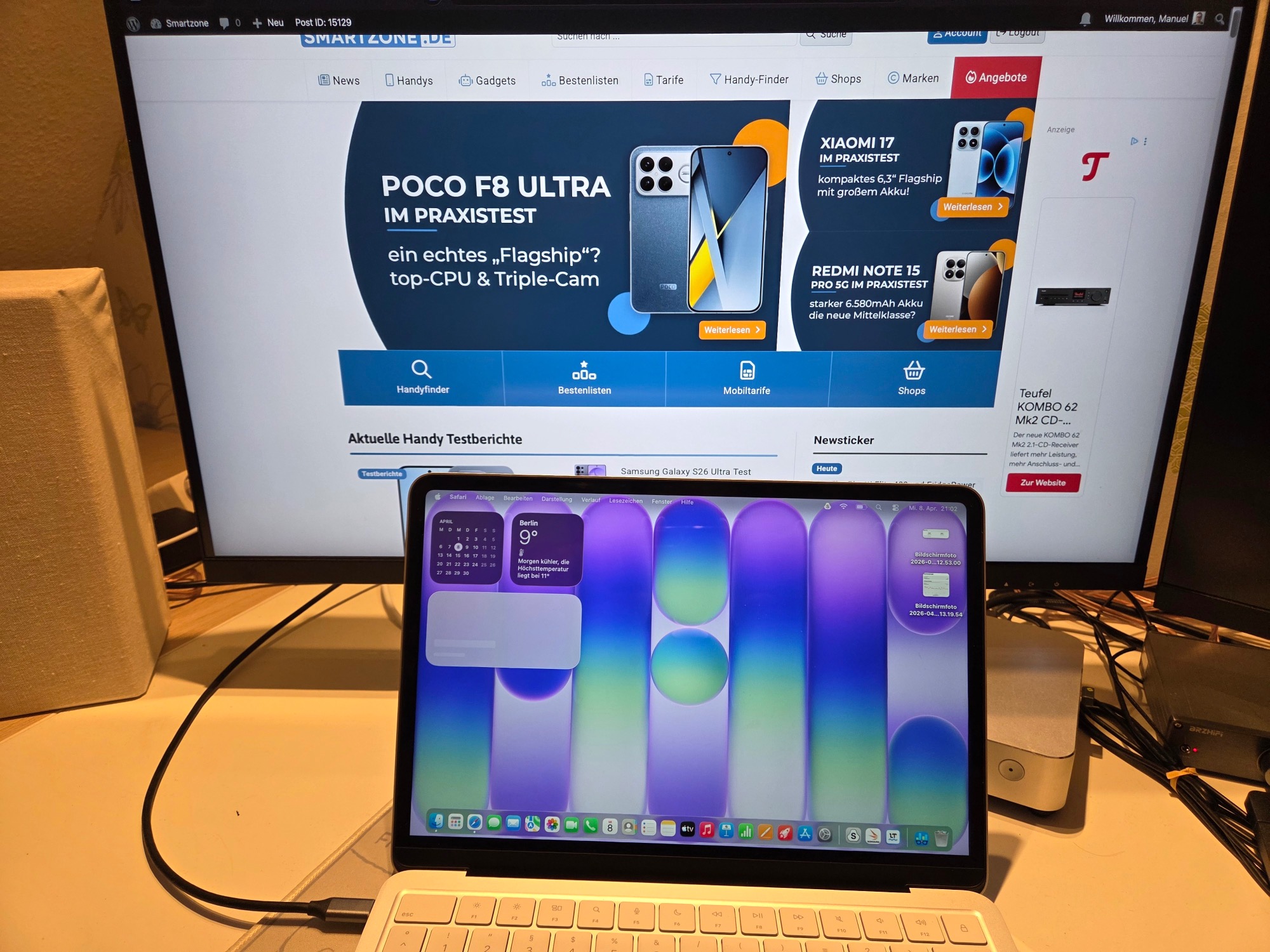 Als Windows-Nutzer war dies der Bereich, auf den ich am meisten gespannt war. Seit ich unter Windows 3.0 noch Disketten in das Laufwerk geschoben habe, ist viel Zeit vergangen, und nun strahlte mich zum ersten Mal macOS 26.4 an. Auch das Apple-System blickt auf eine lange Historie zurück und macht euch den Einstieg leicht. In rund 10 Minuten ist das Neo einsatzbereit. Dafür benötigt ihr zwar eine Apple-ID, Windows 11 ist in diesem Punkt mittlerweile jedoch genauso aufdringlich. Frisch auf dem Desktop angekommen, erwartet euch ein modernes Design, das ihr von Windows nicht gewohnt seid und das an die Linux-Welt erinnert. Zugleich stoßt ihr möglicherweise auf ein erstes Problem: Warum funktioniert die Maus nicht richtig und scrollt in die verkehrte Richtung? Hier zeigt sich macOS wählerisch. Die Maus sollte explizit für Apple freigegeben sein, dann treten keine Probleme auf, und ihr könnt die Scrollrichtung einfach umstellen.