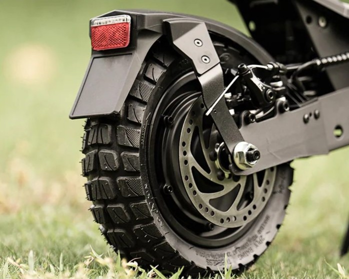 Für Komfort und Sicherheit auf jedem Untergrund ist der Ausom L1 bestens gerüstet: Er steht auf breiten, schlauchlosen 10 x 2,75 Zoll Gummireifen, deren Profil auch auf Schotterwegen guten Halt verspricht. Die Bodenfreiheit liegt bei 18cm bis zum Trittbrett. Eine doppelte Federung an Vorder- und Hinterachse bügelt Bodenunebenheiten souverän glatt. Der Scooter bremst mit mechanischen Scheibenbremsen vorn und hinten, die ein elektronisches ABS (E-ABS) unterstützt.