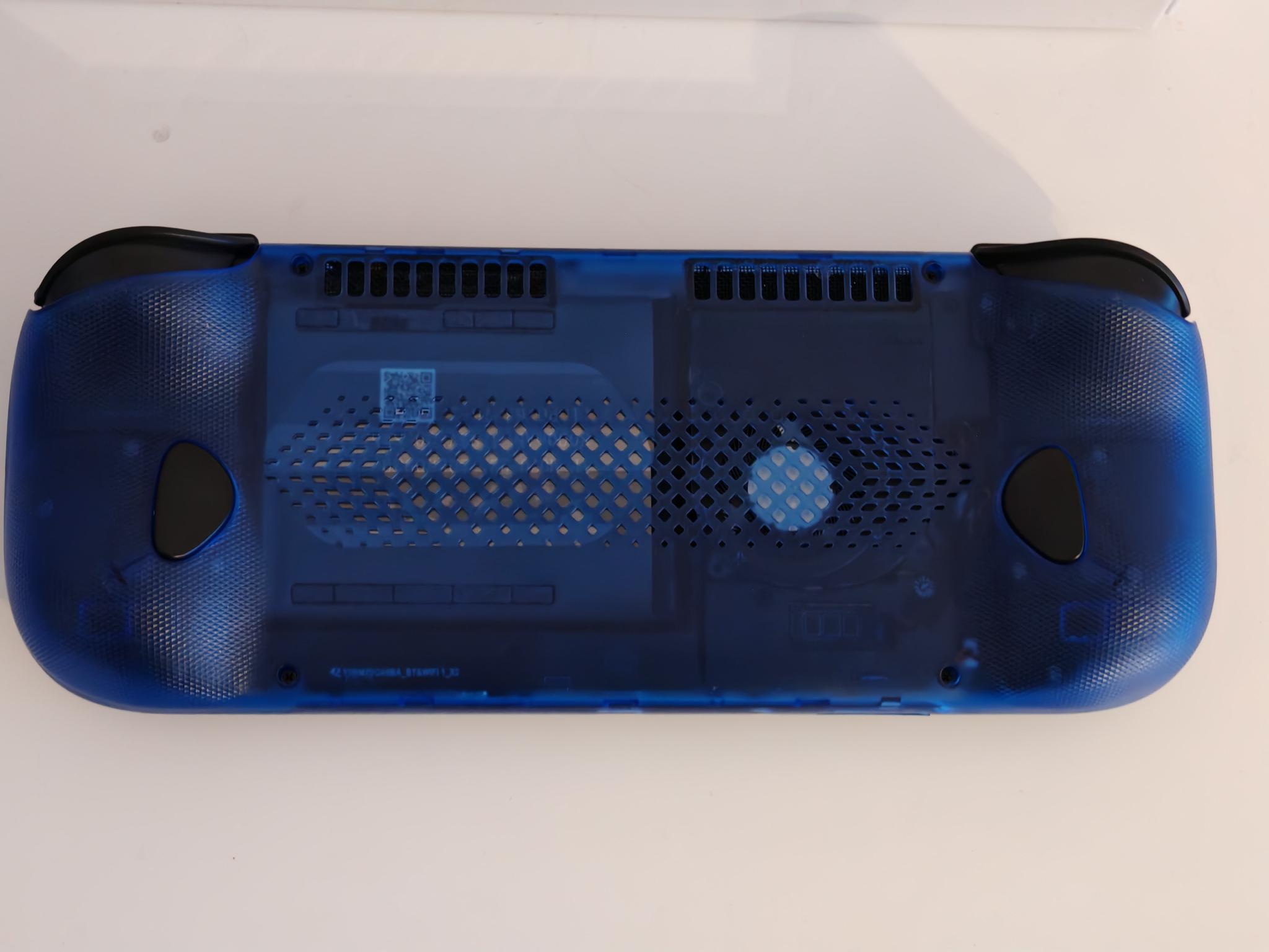 Auf der Rückseite des AYN Odin 3 lässt der große Kühlkörper bereits erahnen, dass im Handheld eine leistungsstarke CPU arbeitet, die entsprechende Abwärme produziert. Mittig auf der Rückseite befindet sich eine große Perforation, hinter der ein Lüfter arbeitet. Darüber hat AYN zwei Lufteinlässe mit Gitter verbaut. An den beiden Wölbungen riffelt AYN die Fläche, damit ihr beim Spielen mehr Grip habt. Eine weitere Besonderheit sind die beiden großen Tasten im „Buckel“ der Unterseite, die für manche Emulationen sehr hilfreich sein können. Dazu gleich mehr …
