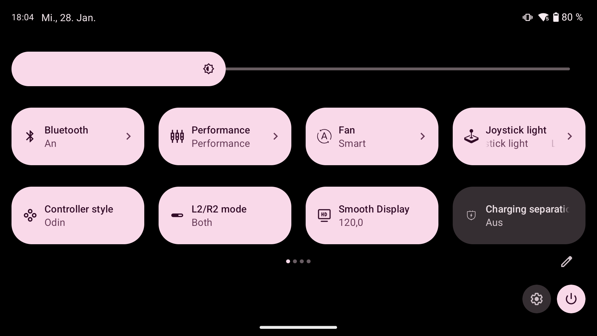 Das Einzige, was ich am Display des RG 557 gelegentlich vermissen werde, ist die etwas höhere Displayhelligkeit. Besonders das Spielen auf dem Balkon an hellen Tagen mit Sonnenlicht war damit möglich. Mit dem AYN Odin 3 konnte ich an hellen, bewölkten Tagen mit 1.170 Lux im Außenbereich aber dennoch sehr gut etwas erkennen. Das Display des Odin 3 kann auch sehr dunkel eingestellt werden.