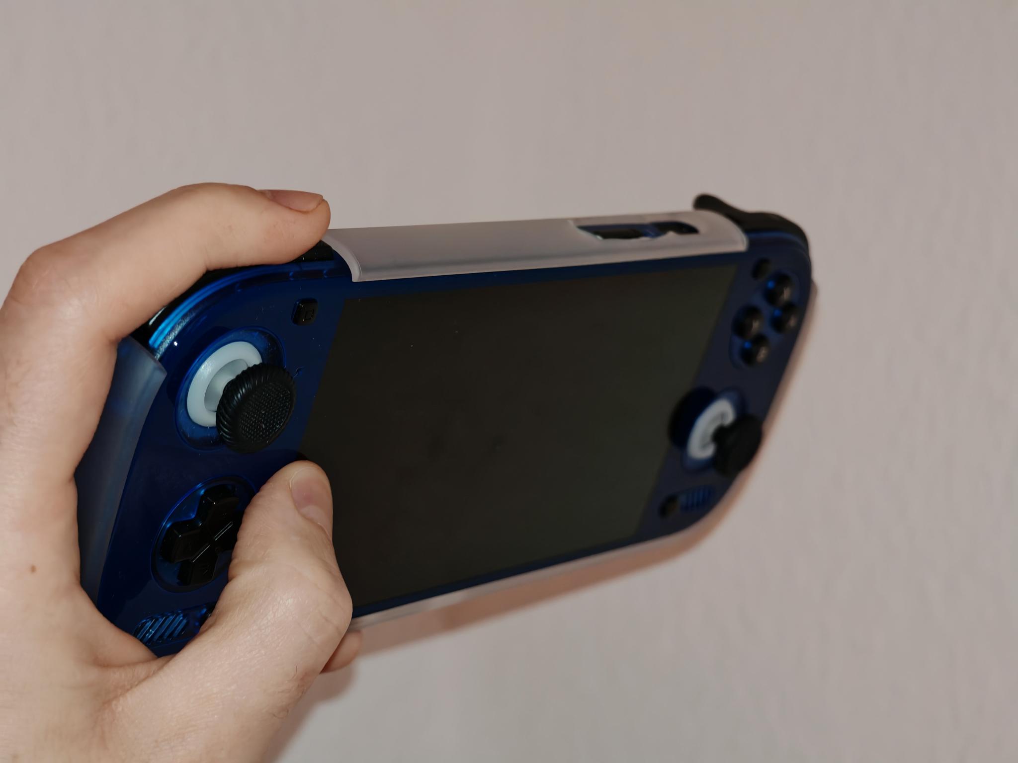 Für 15€ gibt es außerdem den oben angesprochenen, breiteren „TPU Grip“ in Schwarz, Weiß oder transparent. Durch die „Griffhörner“ lässt sich das Gerät über längere Zeit bequemer bedienen. Ebenso erhältlich ist ein Case für rund 12€ für den Handheld, wenn der Grip angebracht ist.