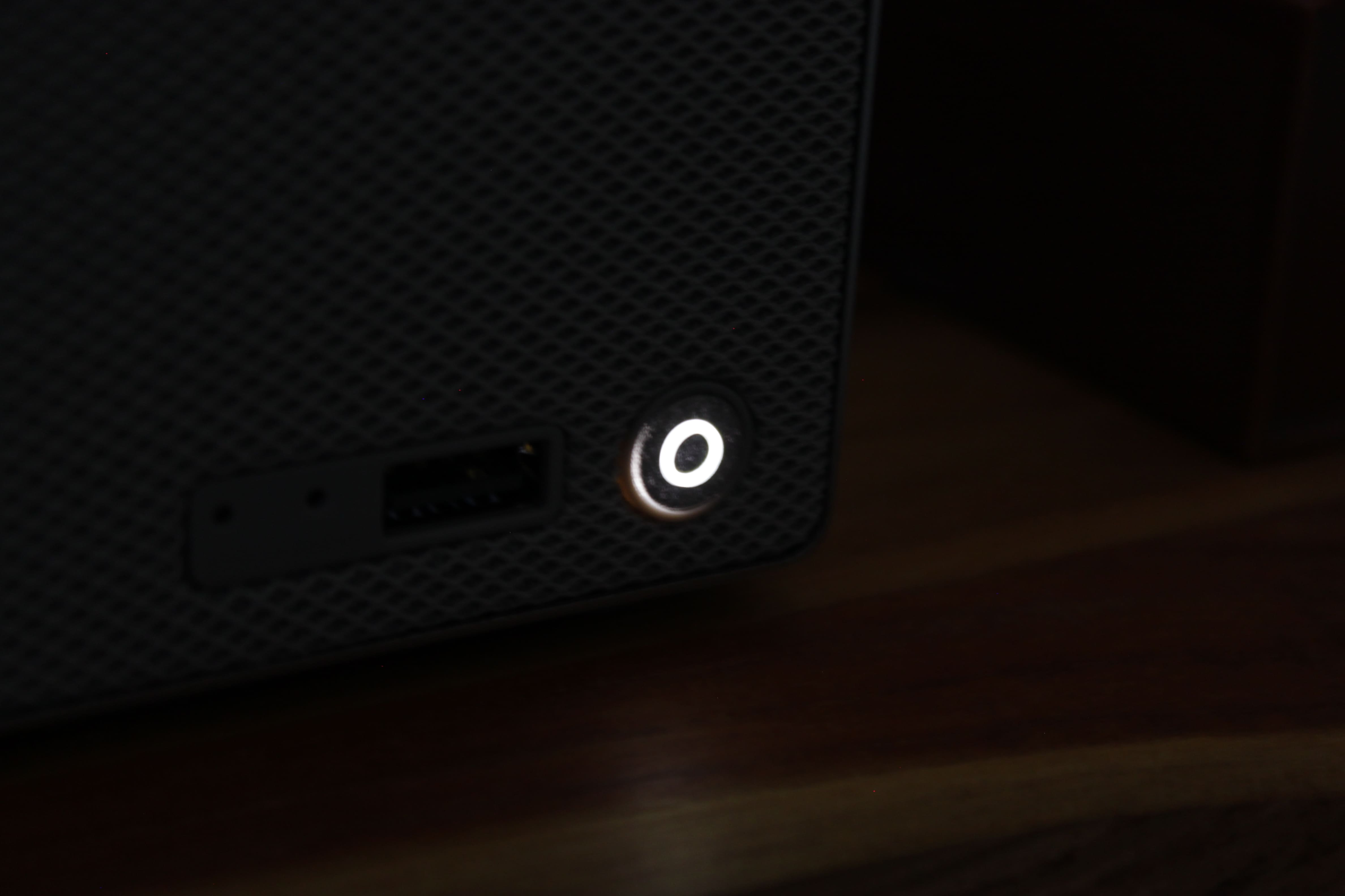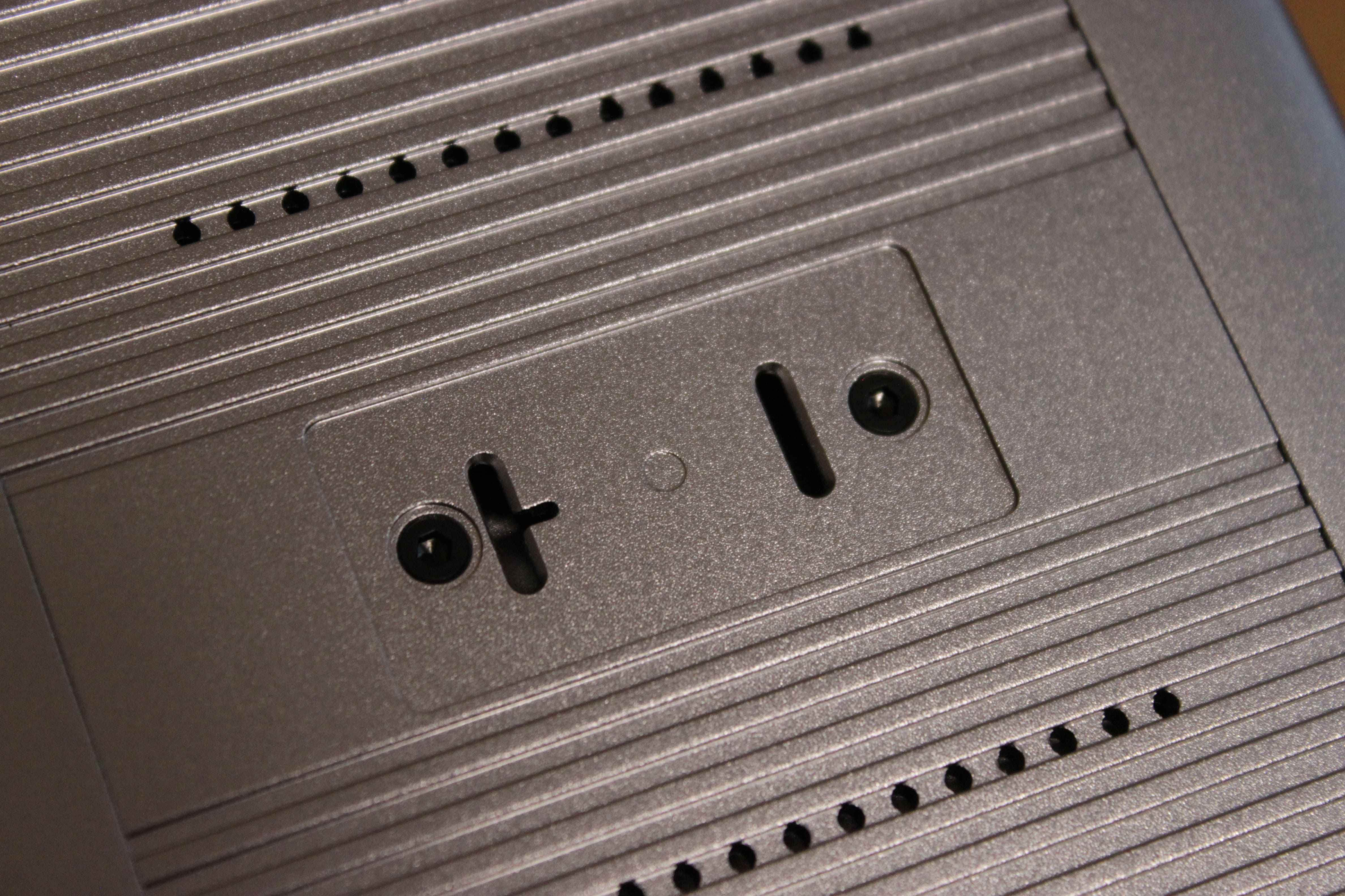 Der USB-Port und der Einschaltknopf mit den beiden Reset-Löchern sind unauffällig unten rechts platziert. Auch die weiße Hintergrundbeleuchtung des Knopfs ist gut umgesetzt. Die Rückseite des Beelink ME Pro überzeugt ebenfalls.