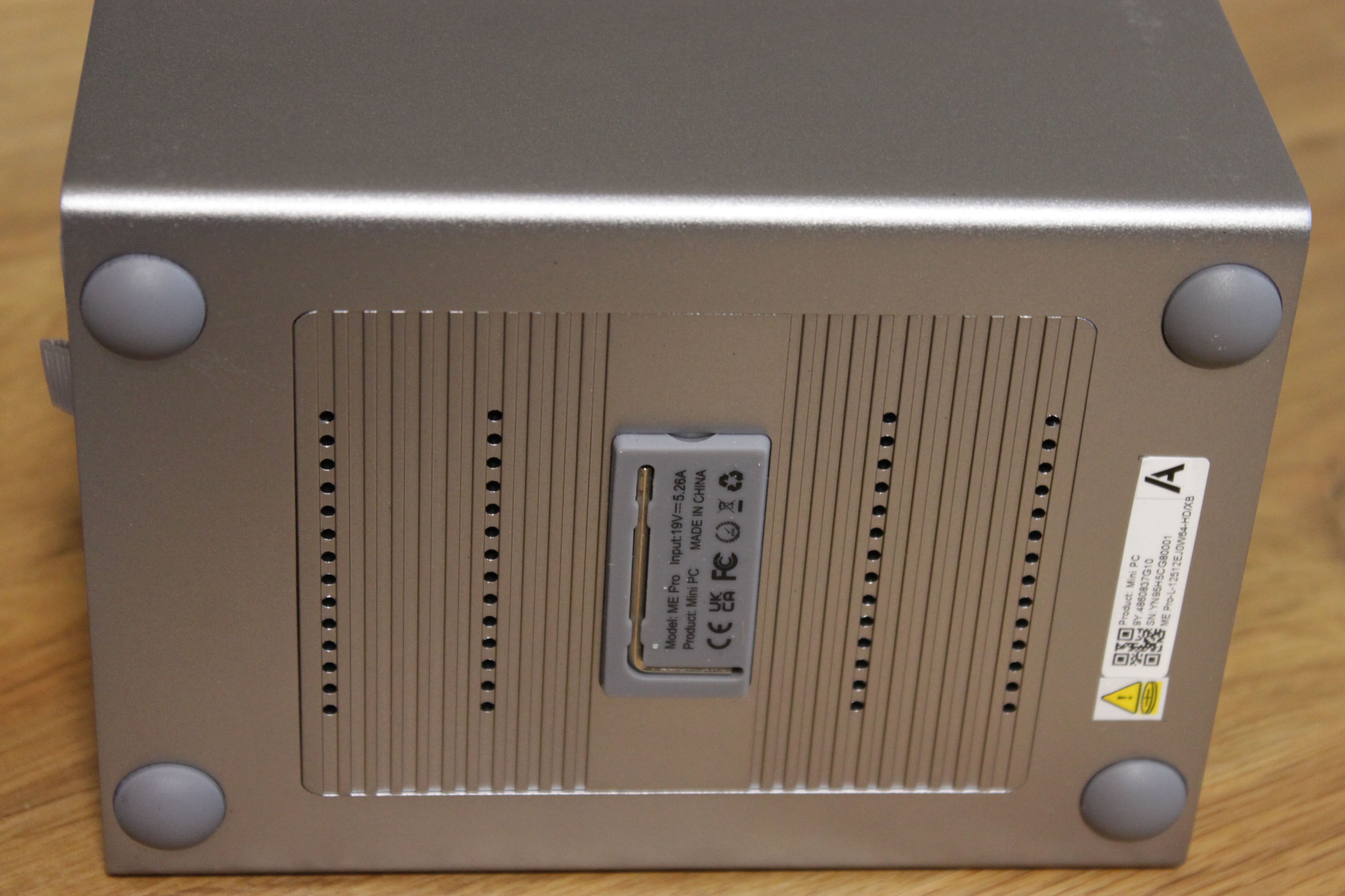 Auf der Unterseite des Beelink ME Pro finden wir vier stabile Standfüße, die eine ausreichende Luftzufuhr von unten ermöglichen.