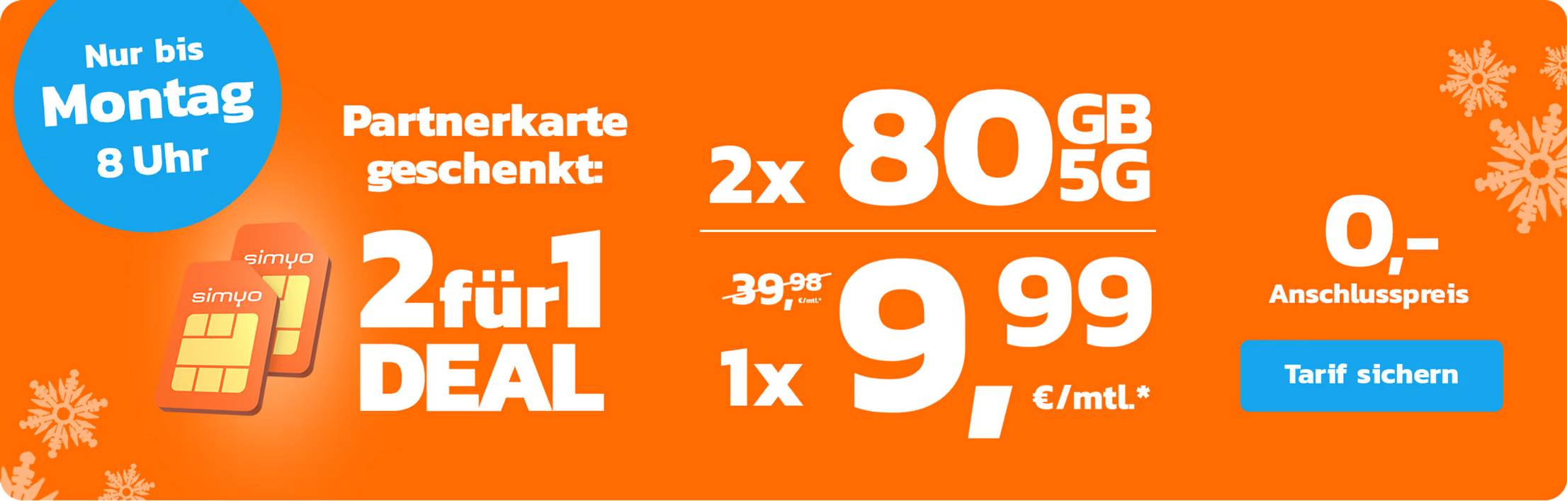 Zum Black Friday gab es bei simyo mit zwei Jahren Bindung 100GB für 9,99€ und jetzt sind es nur 80GB!