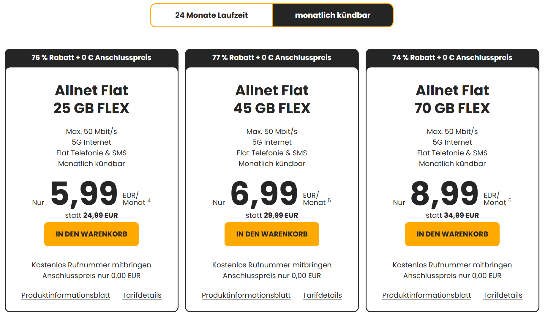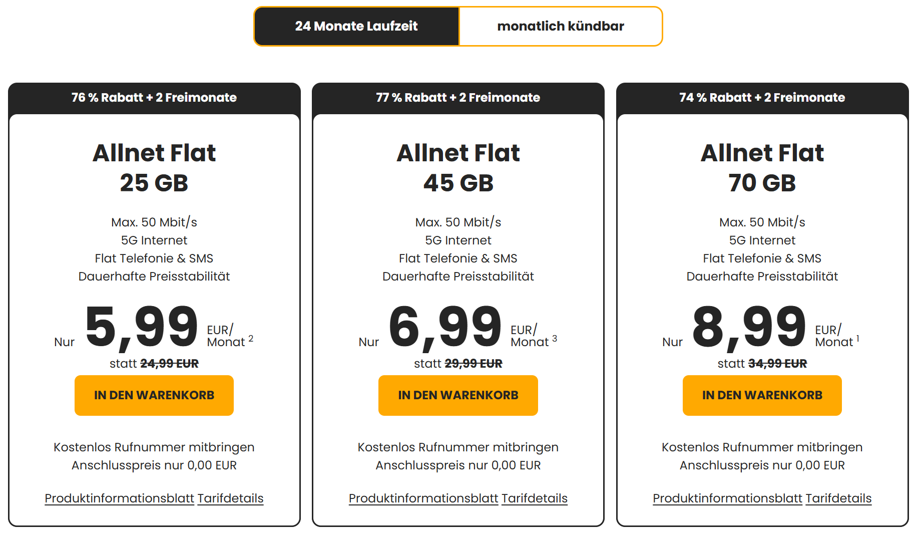 | Tarif: | Allnet Flat 25GB 5G | Allnet Flat 45GB 5G | Allnet Flat 70GB 5G |