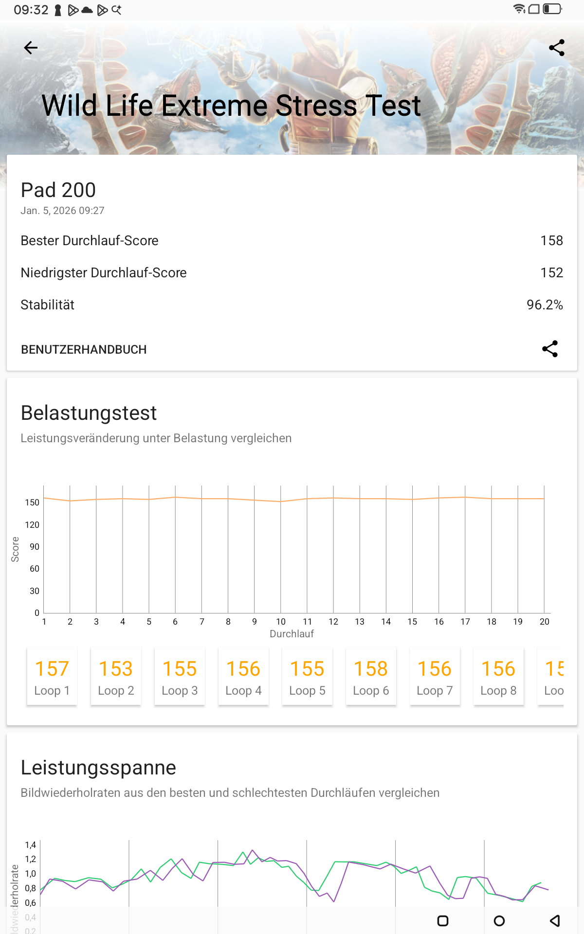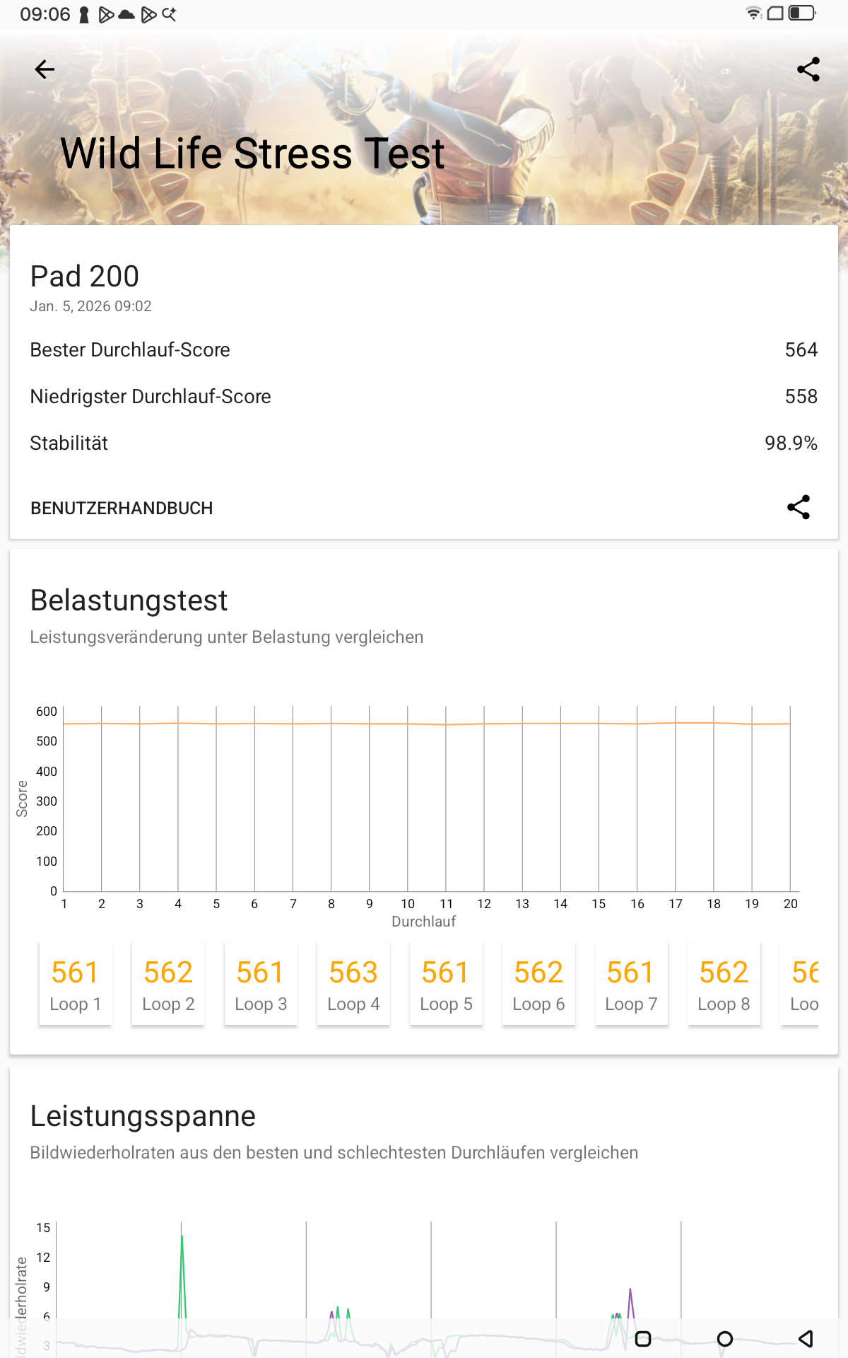 Der Unisoc T7280 erfüllt seine alltäglichen Aufgaben, eine gewisse Trägheit ist jedoch nicht zu leugnen. Auch die 120Hz wirken nicht wirklich flüssig, sondern eher ruckelig; gleiches gilt für die Animationen. Die Leistung hat uns nicht enttäuscht, aufwendige Anwendungen sind aber nicht die Stärke des Oscal Pad 200.