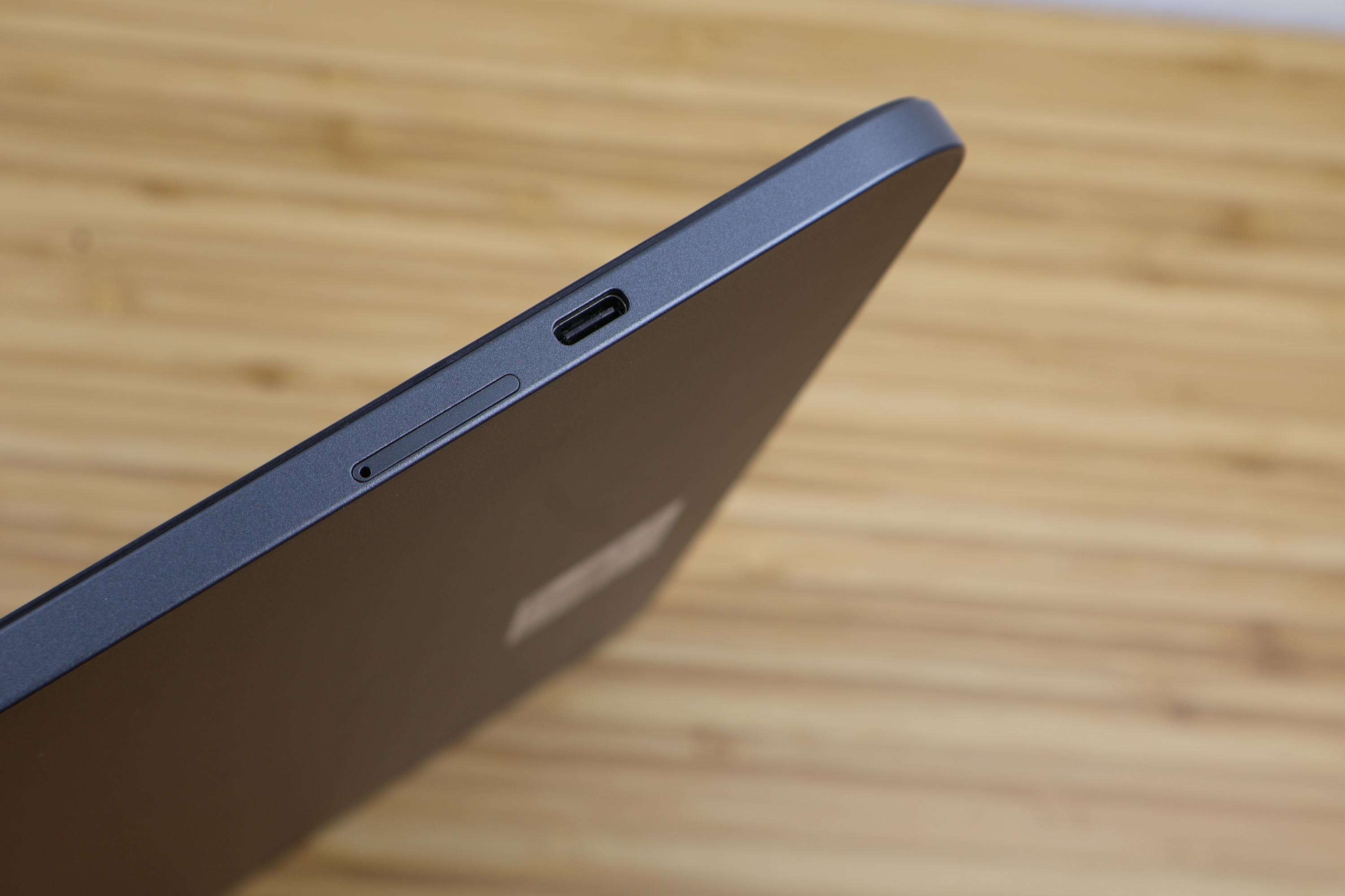 Darunter befindet sich der USB-2.0-Anschluss. Auf der Unterseite sitzen schließlich die Stereo-Lautsprecher. Im Display eingelassen ist zudem die 8-Megapixel-Frontkamera, während auf der Rückseite eine 16-Megapixel-Kamera verbaut wurde. Eine IP-Zertifizierung ist nicht vorhanden. Die Verarbeitung fällt etwas dürftig aus. Weniger wegen der Materialwahl, doch das Tablet strahlt wenig Stabilität und Robustheit aus. Haltet ihr das Gerät in der Hand, könnt ihr es leicht am Rahmen biegen und dabei sehen, wie sich das Display aus den Verankerungen löst. Das Gleiche erreicht ihr auch ganz einfach mit einem Fingernagel.