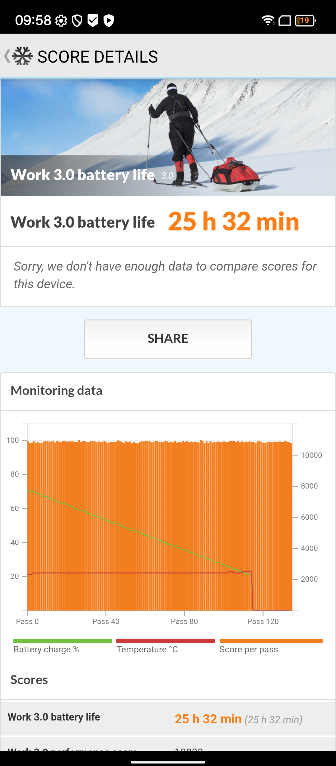Besonders der Stand-by-Verbrauch ist extrem niedrig und hat bei einem 24-Stunden-Test kein einziges Prozent verbraucht. Selbst bei aufwendigen Benchmarks ist der Verbrauch eher gering. Was dem Prozessor gegenüber dem Vorgängermodell an Leistung fehlt, holt er bei der Effizienz wieder heraus. Das Smartphone kann mit 27 Watt über Kabel und mit 15 Watt kabellos aufgeladen werden. Zudem wird 10W Reverse-Charging unterstützt, um andere Geräte aufzuladen. Die Aufladung dauert etwas über drei Stunden. Vor allem die letzten 10% dauern sehr lange. Eine Aufladung über Nacht ist daher empfehlenswert.