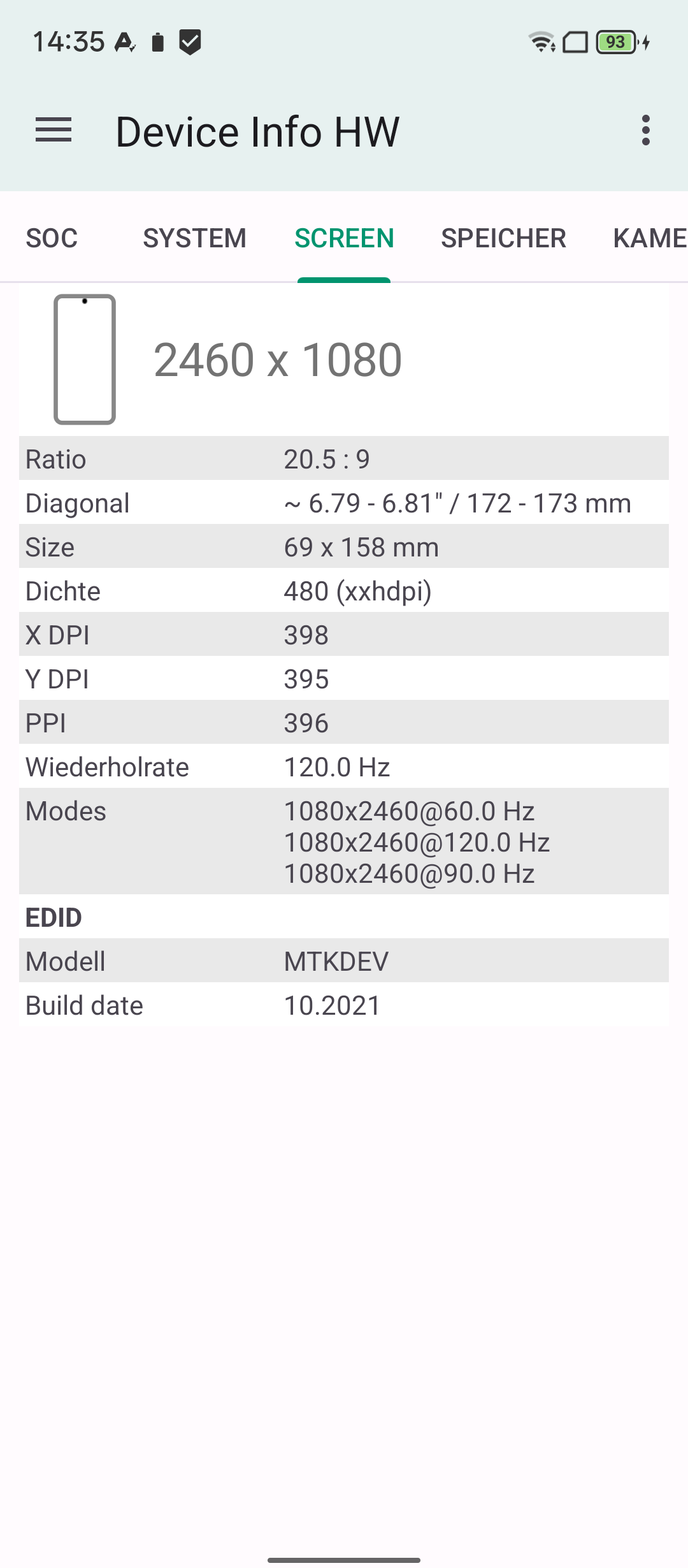 | Display | 2460 x 1080, 6,8 Zoll 120Hz (IPS) |