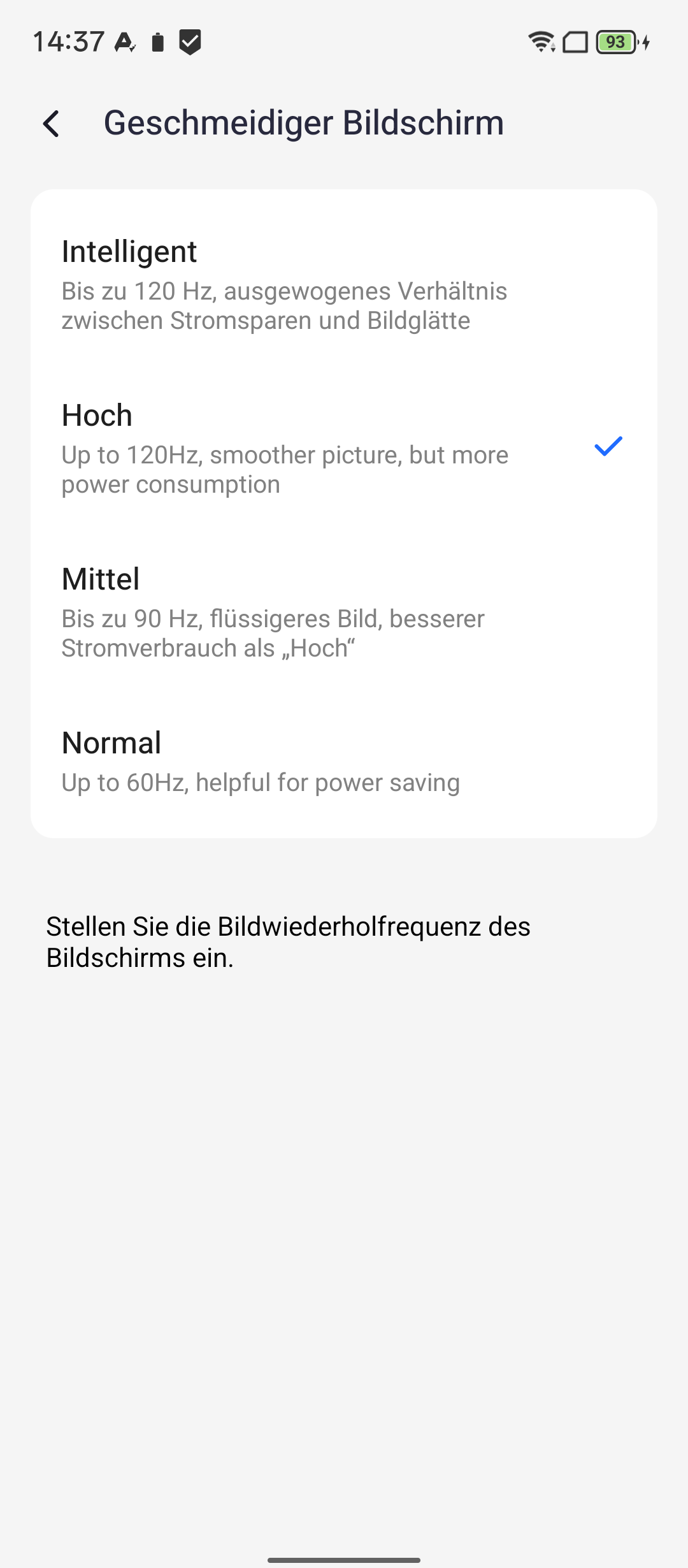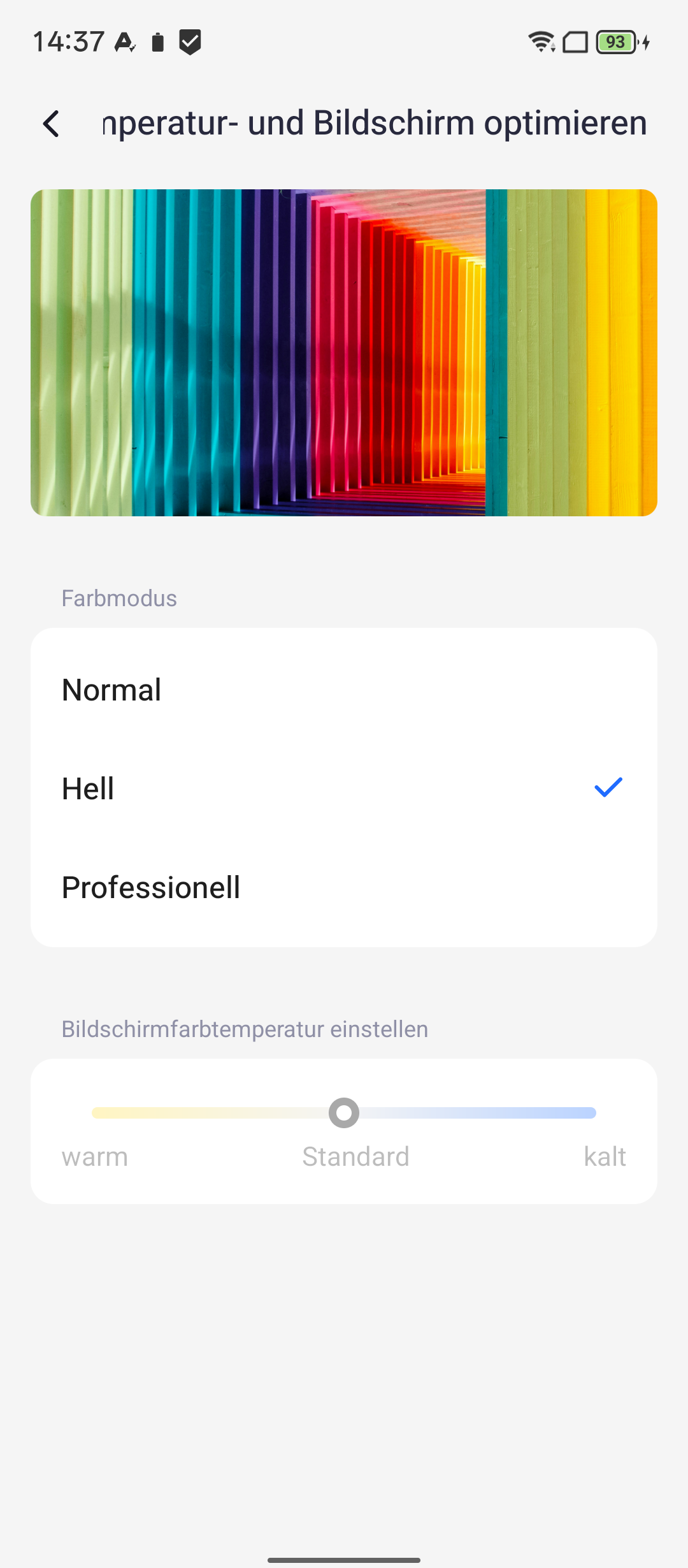 Auf der Vorderseite kommt ein 6,78 Zoll großes IPS-Panel zum Einsatz. In den Einstellungen könnt ihr zwischen den Optionen „Automatisch“, 60, 90 oder 120 Hertz wählen. Die Auflösung beträgt 2460 x 1080 Pixel, was zu einer Pixeldichte von 395 Pixeln pro Zoll führt. Die maximale Helligkeit messen wir mit 1.014 Lux. Dank Widevine L1 könnt ihr problemlos in Full-HD-Qualität streamen.