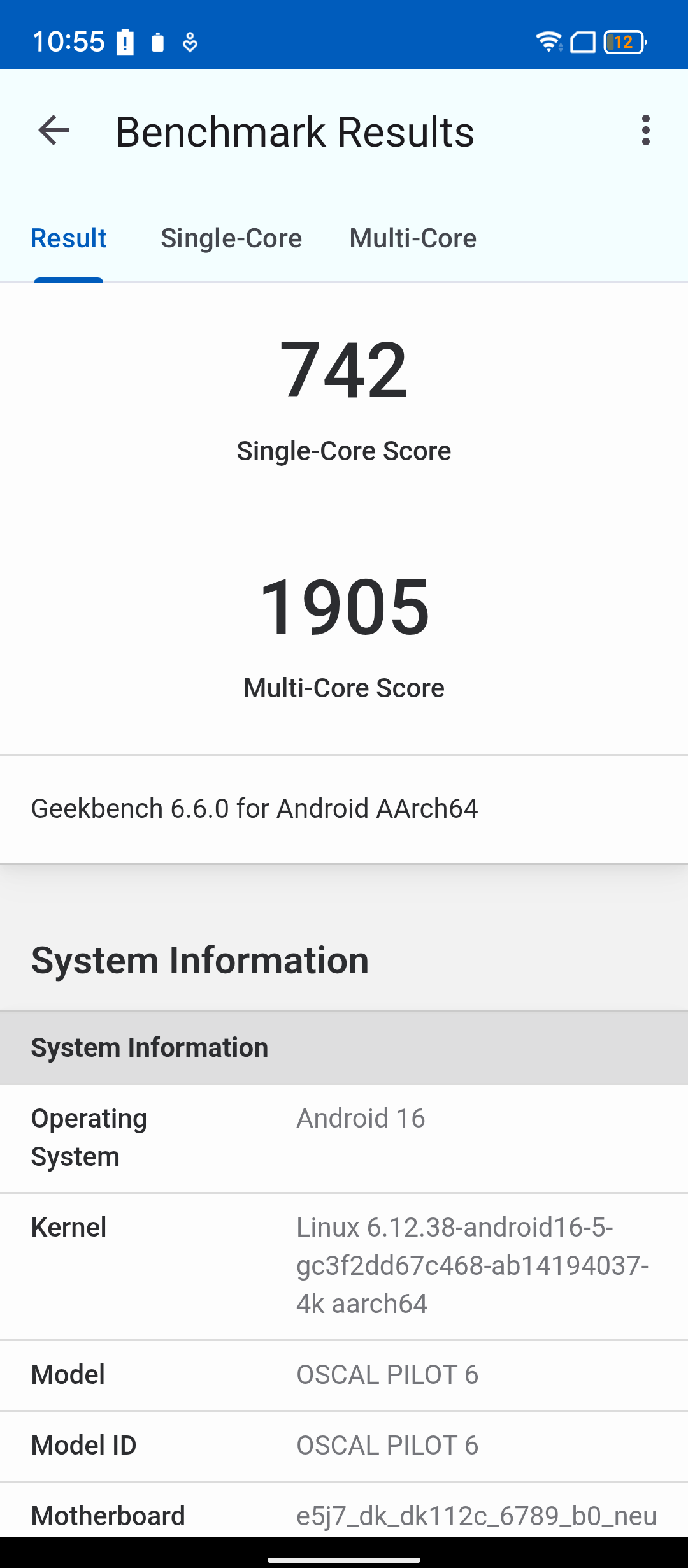 Auch die Wahl des Prozessors ist für einen Nachfolger fragwürdig. Im Blackview Oscal Pilot 6 kommt der MediaTek Helio G100 zum Einsatz, der leistungstechnisch mit dem Helio G99 vergleichbar ist. Der SoC integriert zwei ARM-Cortex-A76-Kerne mit bis zu 2,2GHz für anspruchsvolle Aufgaben sowie sechs kleine ARM-Cortex-A55-Kerne mit bis zu 2GHz Taktfrequenz in einem Stromspar-Cluster. Wenn ihr den Benchmarks vertraut, schneidet er sogar schlechter ab als der Unisoc T8100 aus dem Vorgängermodell, und das auffallend deutlich. Hinzu kommen 12 Gigabyte Arbeitsspeicher.