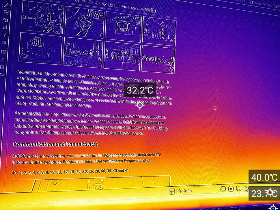 Grundsätzlich ist eine integrierte Wärmebildkamera ein Pluspunkt. Es lassen sich auch korrekte Temperaturberechnungen damit durchführen. Das allein ist ein riesiger Pluspunkt für das Smartphone, denn ein solches Feature kostet einfach sehr viel Geld. Wirklich gute Wärmebildkameras bekommt man in doppelt so teuren Outdoor-Smartphones. Dass hier in einem günstigen Smartphone eine zumindest funktionale Kamera integriert wurde, muss positiv erwähnt werden.