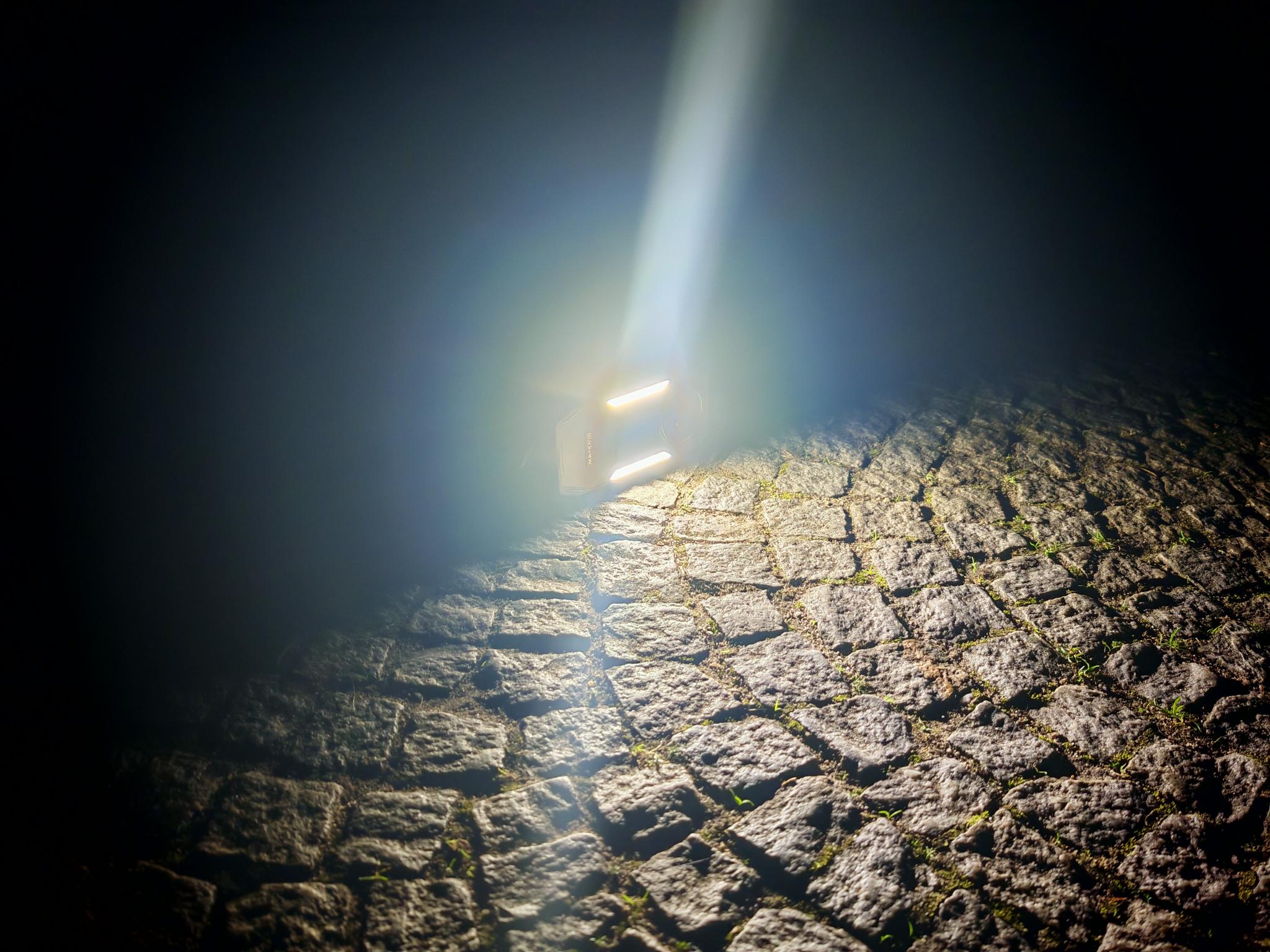 Ein besonderes Highlight ist die integrierte Taschenlampe, die mit ihren 467 Lumen eine kleine Taschenlampe spielend ersetzt. Im Praxistest konnte sie problemlos einen ganzen Raum ausleuchten. Für nächtliche Spaziergänge ist sie ebenfalls ausreichend. Die Lampe hat drei Leuchtstufen, einen Timer und eine SOS-Funktion.