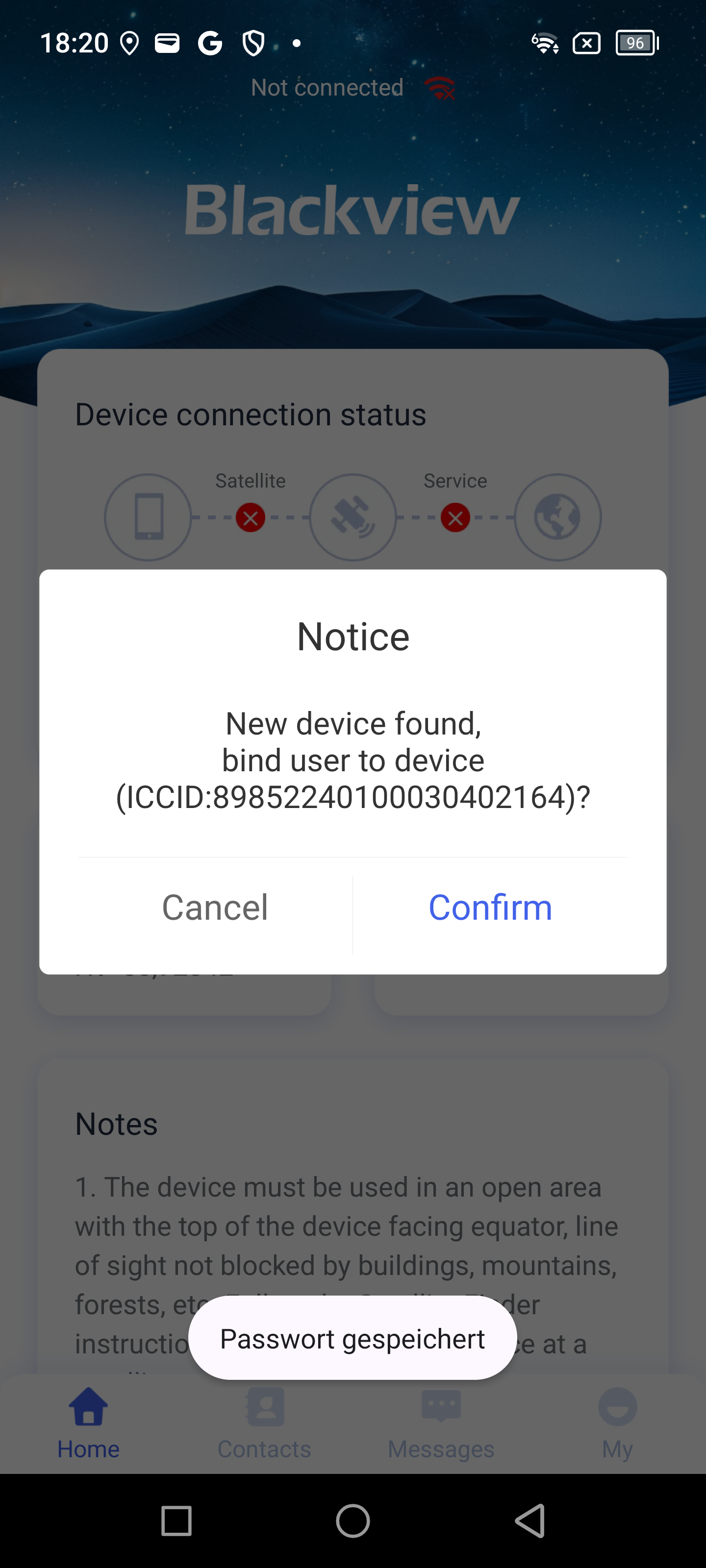Um die Satelliten-Funktion zu nutzen, müsst ihr euch zunächst durch einen kleinen Dschungel an Bezeichnungen kämpfen. Blackview bewirbt die Kooperation mit dem Netzwerkanbieter Skylo, auf dem Smartphone selbst findet man jedoch die vorinstallierte App „JathiStar“. Sobald es an die Bezahlung geht, taucht in der Abrechnung der Name „FZIOT“ auf. Das wirkt auf den ersten Blick etwas zusammengewürfelt, funktioniert technisch aber als Einheit: Skylo stellt das Netz, JathiStar die Benutzeroberfläche und FZIOT wickelt die Abrechnung ab.