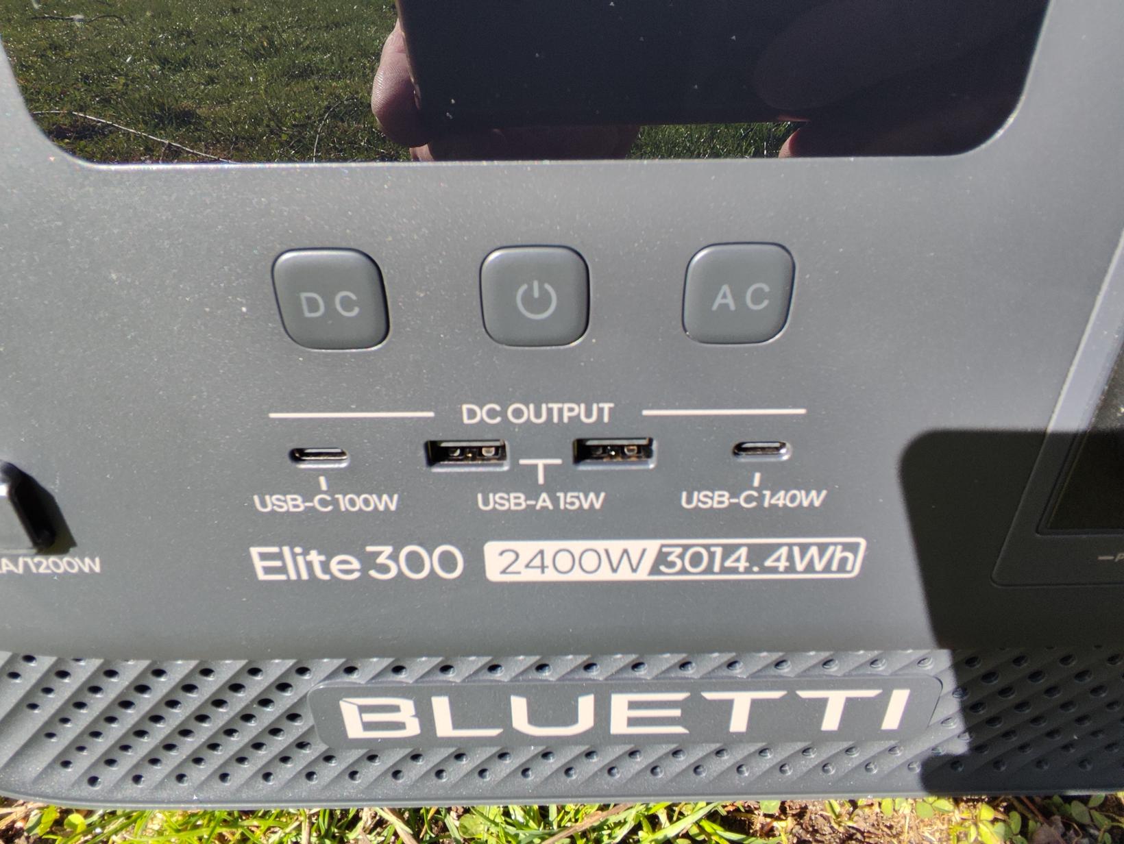 Bis auf den AC-Ladeanschluss befinden sich alle Anschlüsse der Bluetti Elite 300 auf der Vorderseite. Diese gliedern sich wie folgt auf: